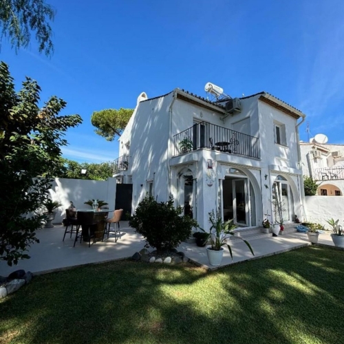 A lovely traditional style 4 bed, 4.5 bath villa on a 1700m2 plot in a prime front line golf location in El Paraiso Alto (Benahavis). The villa oozes Andalucian charm with ample living space internally and externally, with many great features, including a spacious lounge with open fireplace, separate dining room, a large heated private pool, large garden, garage and numerous terraces on which to enjoy the Spanish sunshine. Although the property is constructed in the traditional Andalucian style, many aspects of the interior have been upgraded, including brand new floors, kitchen, bathrooms and hot/cold aircon throughout. The property has an south east orientation, but the garden is large enough to be able to enjoy the sunshine at pretty much any time of the day. The lower tier of the garden is very private and overlooks the golf course.