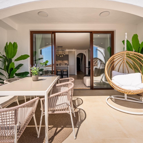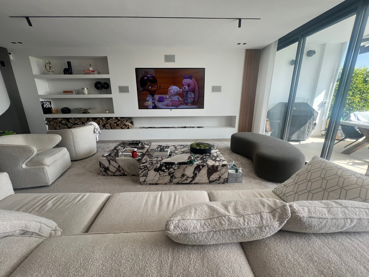 Located in the prestigious La Quinta Golf, this beautifully renovated townhouse offers breathtaking sea, golf course, and mountain views from every level. Designed for modern luxury, it features a bright open-plan living space, a sleek Barazza kitchen with a central island, and a stylish bioethanol fireplace. Floor-to-ceiling sliding doors lead to a spacious terrace, perfect for al fresco dining and relaxation.