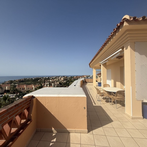 Presenting new to the market penthouse located in the heart of Las Lagunas de Mijas. Boasting a sprawling 164m2 terrace offering breathtaking panoramic views of the surrounding landscape, this three-bedroom, two-bathroom penthouse epitomizes elegance and sophistication.
