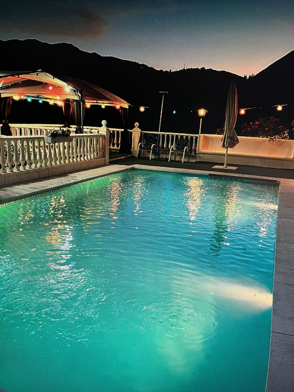 In addition to the main house there are numerous entertaining areas, dining and sunbathing terraces, a large, heated swimming pool, an outdoor bathroom, a chef's kitchen, and bar plus significant hard standing areas supported by concrete foundations.