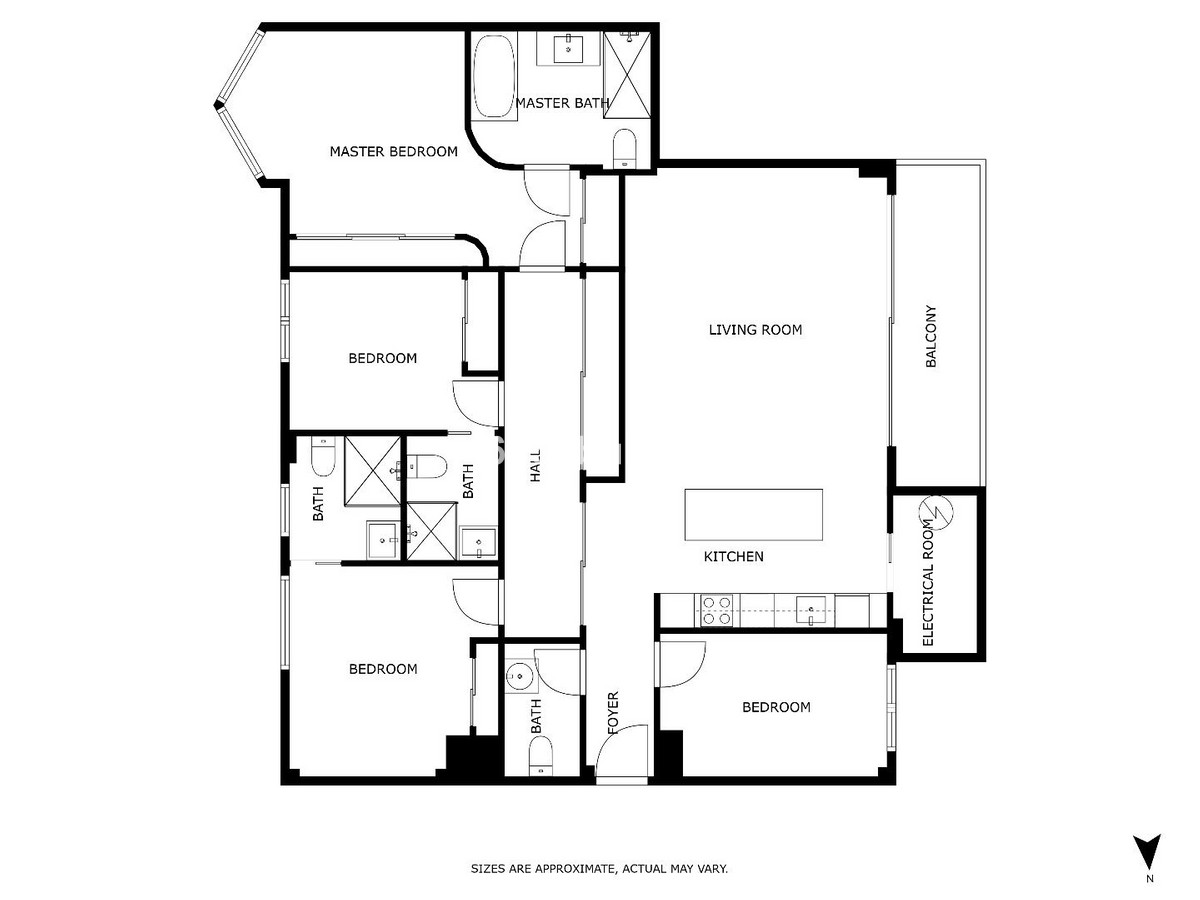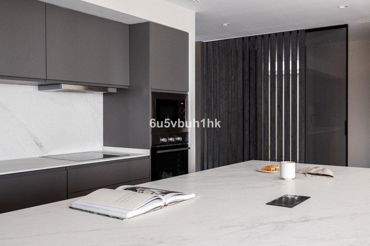 The apartment features a spacious open-plan living-dining area integrated with a modern, high-quality, fully equipped kitchen. It comprises four elegant bedrooms, three of them with en-suite bathrooms, as well as a guest toilet next to the main entrance.