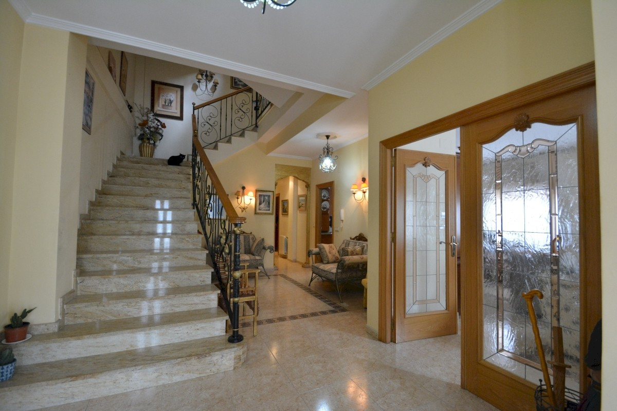 Currently, the ground floor comprises a grand entrance, a separate kitchen, a spacious living-dining area, 1 full bathroom, a laundry room, and a bedroom. The first floor hosts 6 bedrooms and 3 bathrooms, while the solarium floor offers 1 bedroom and 1 bathroom, along with a large southeast-facing terrace.