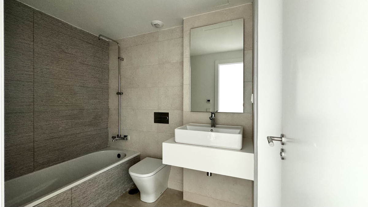 On the first floor there are three spacious bedrooms with a view of the sea, coast or green areas, equipped with built-in wardrobes. The master bedroom has its own bathroom with shower, while the additional two bedrooms share a bathroom with a bathtub.