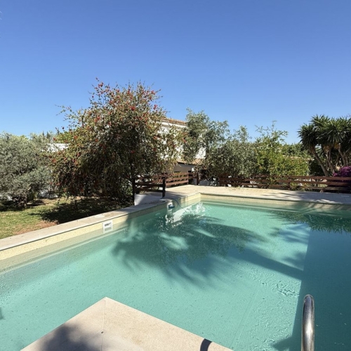 This hidden gem is nestled in a green oasis of nearly 4000m2, located 5 km from the lively village of Alhaurin el Grande, 20 km from the beaches of La Cala de Mijas, and 30 km from Malaga airport. Behind the walls of this historic estate lies a verdant world of mature trees and plants, several terraces, a spacious swimming pool, and a characteristic Andalusian country estate. The entrance to the main house (with a living area of 150m2) is directly behind the gate of the stone enclosure. Through a hallway, we enter the cozy living room, adjacent to the dining room, and spacious kitchen with stunning views. The main house has underfloor heating and a wood-burning stove. There are two bedrooms, one with an ensuite bathroom, as well as a second bathroom. The property exudes Andalusian authenticity from every angle. Beneath the main house is a guest apartment of 51m2, with a separate kitchen and bathroom.