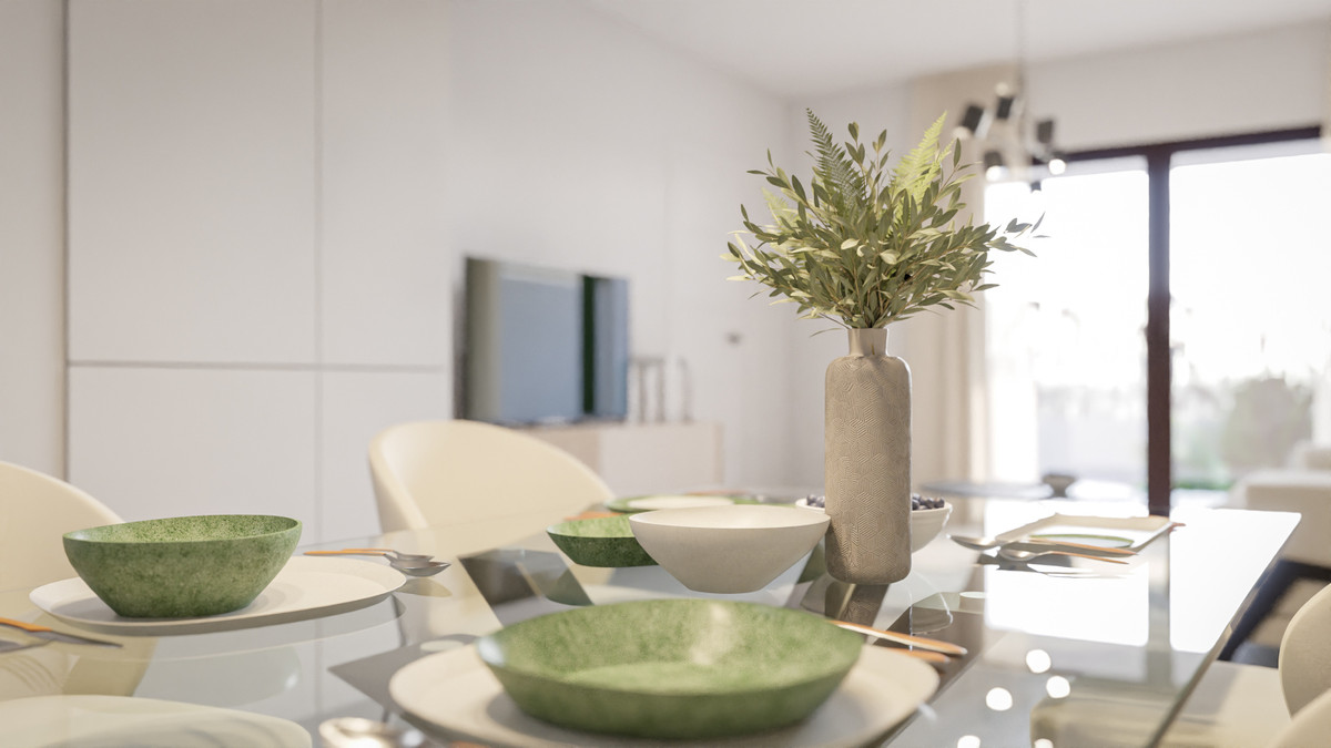 It comprises 12 properties with 2 bedrooms and 2 bathrooms, spread across three different levels with terraces. Most of the homes include a private parking space and storage room at the garage level, and a couple of properties will have a private garden. The penthouses will feature spacious solariums with stunning views of the area.