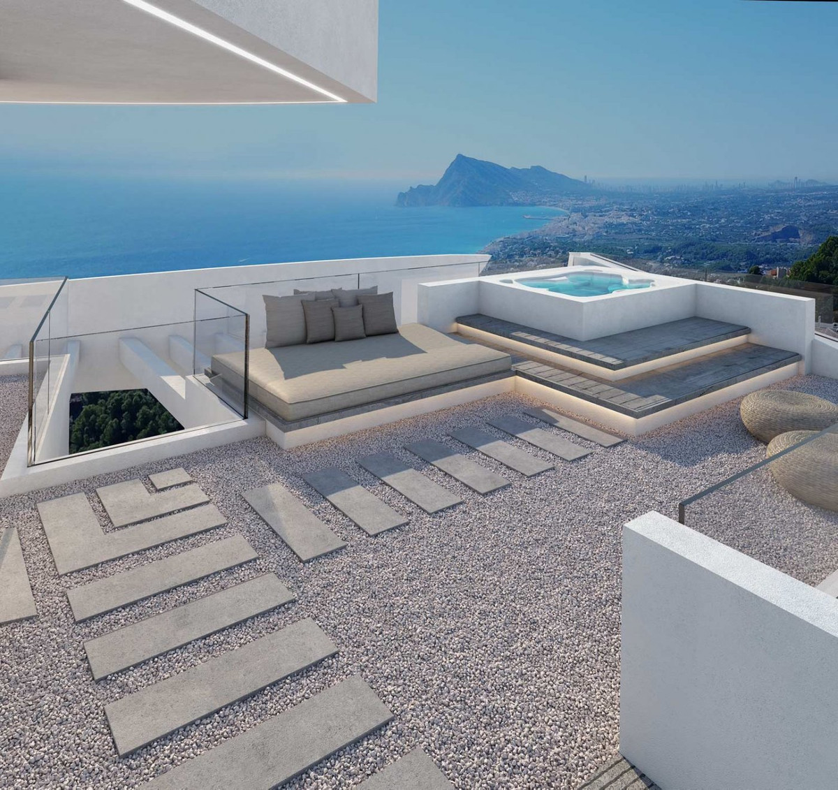Luxury villa for sale in Altea Hills with incredible sea views. The total area of the villa is 413 m2, the land area is 979 m2. The house has four bedrooms, four bathrooms, central air conditioning, which works for heating and cooling, heated floors, a fully equipped kitchen, a designer garden, a large private pool, a terrace, a recreation area, two parking spaces, lighting of the territory. The villa is built to the highest standards of quality and taste. One of its main advantages is a breathtaking sea view. The villa is located in Altea Hills - one of the most desirable places to live on the Costa Blanca, where the entire infrastructure satisfies even the most discerning client.
