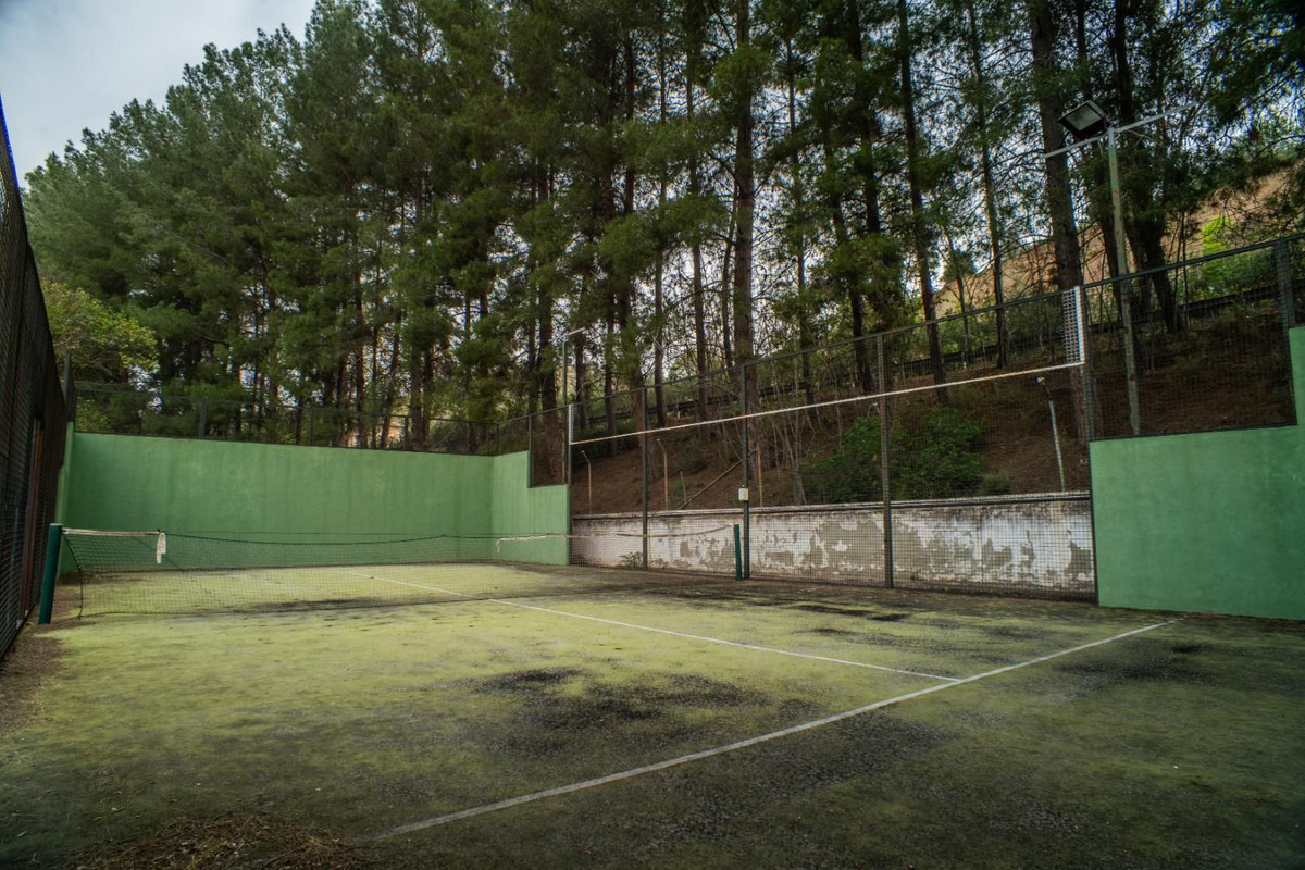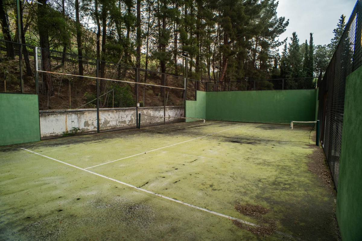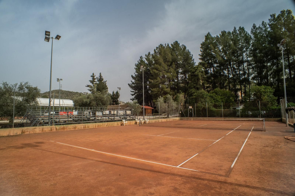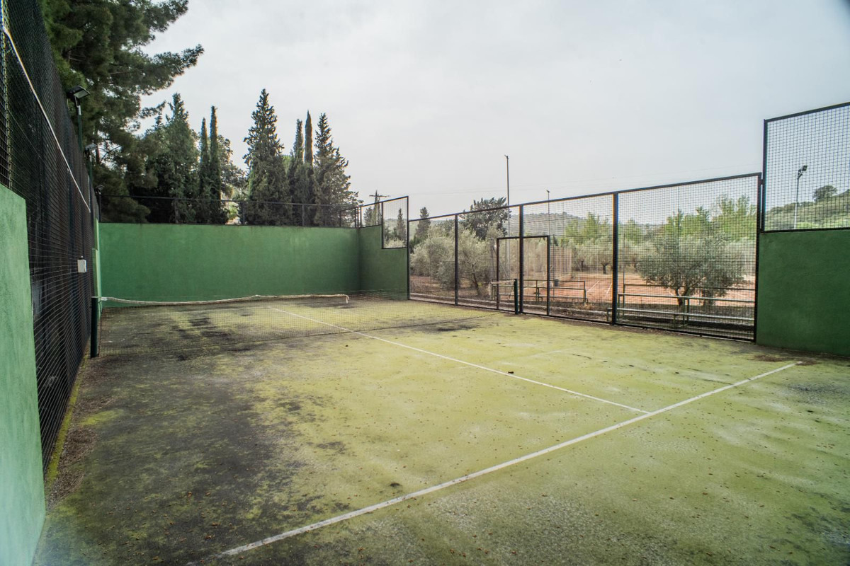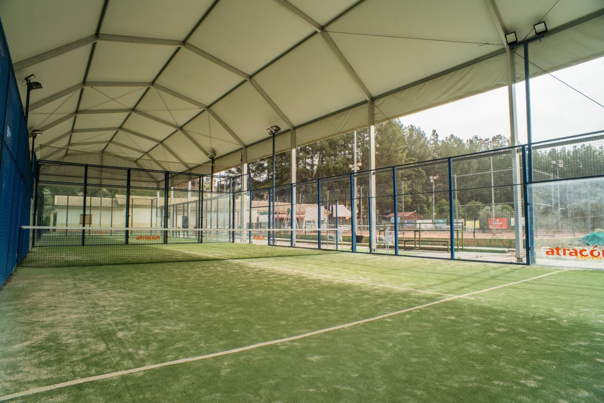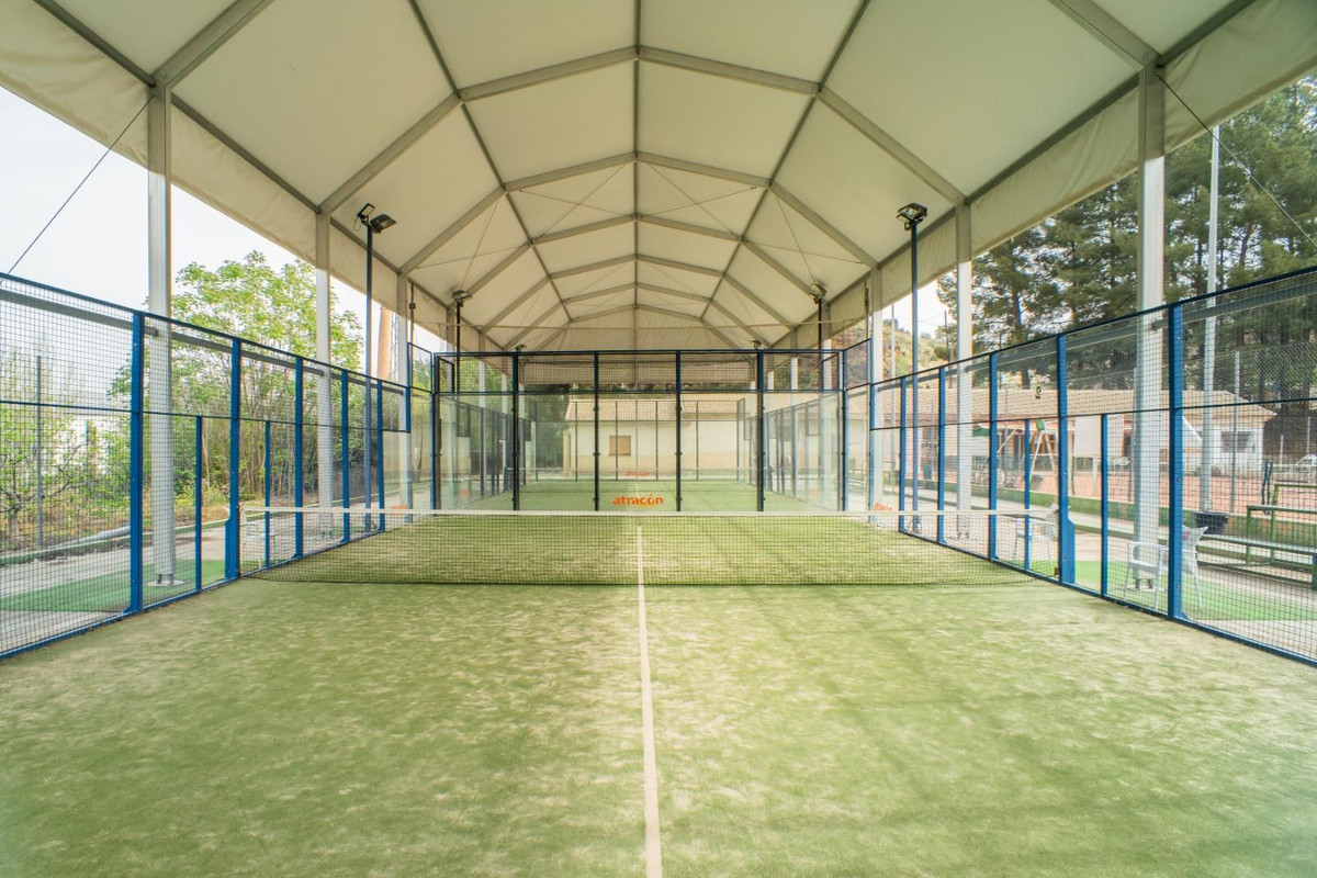 The tennis club has 5 tennis courts, 2 new indoor paddle tennis courts and two old paddle tennis courts. It has a gym area. It has 2 changing rooms, both with two toilets. It also has a bar with barbecue area.