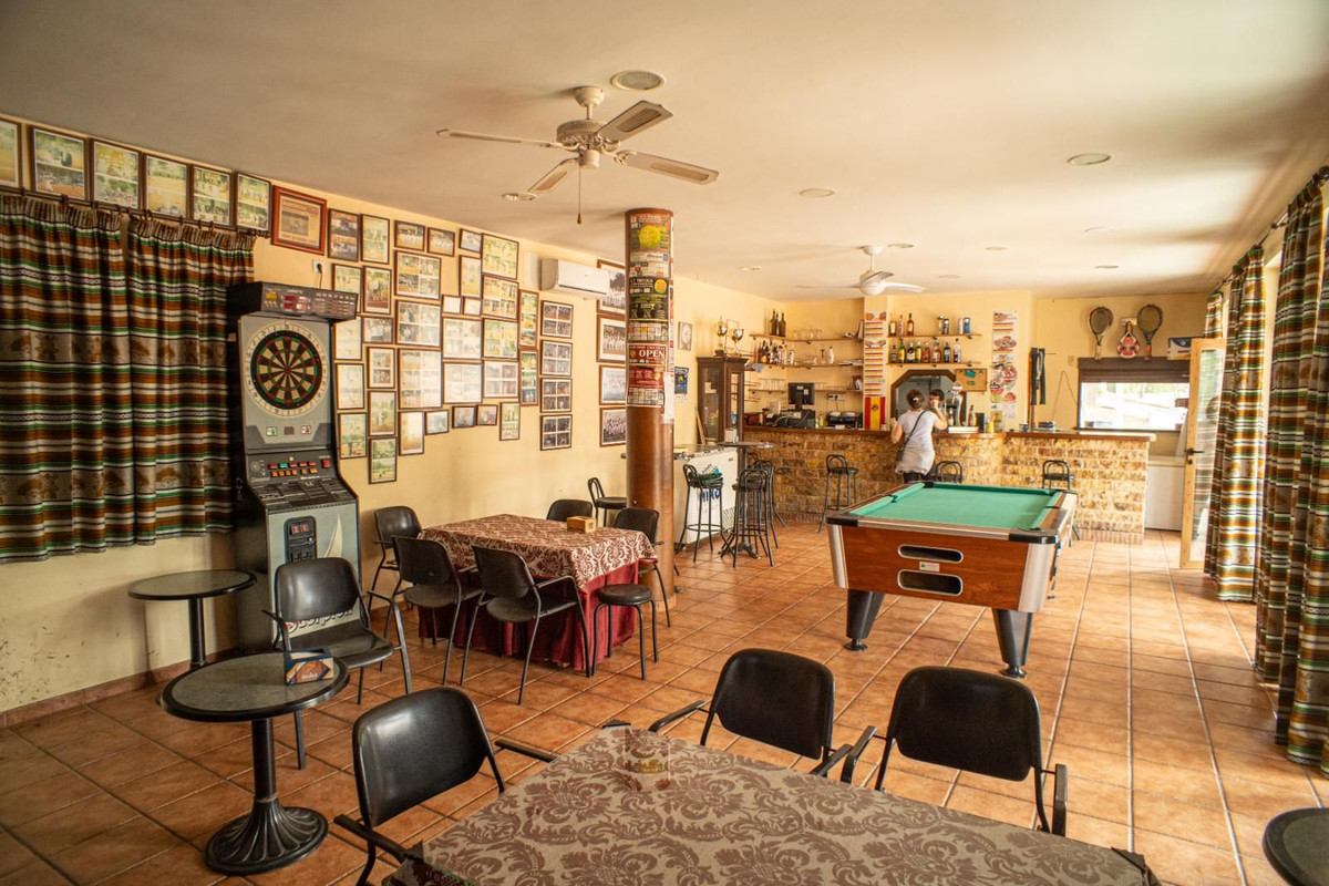 In the pool area there is a small bar and also a toilet and a bathroom.