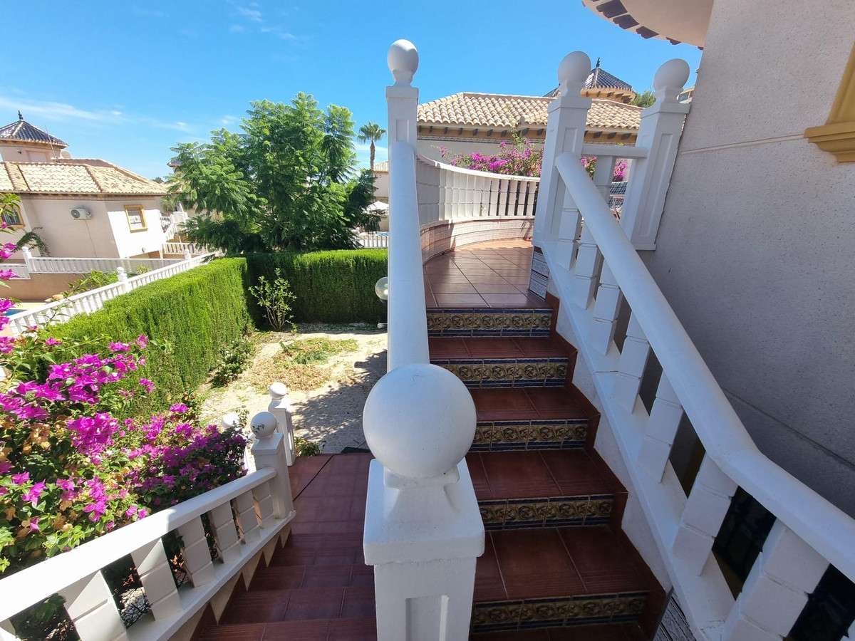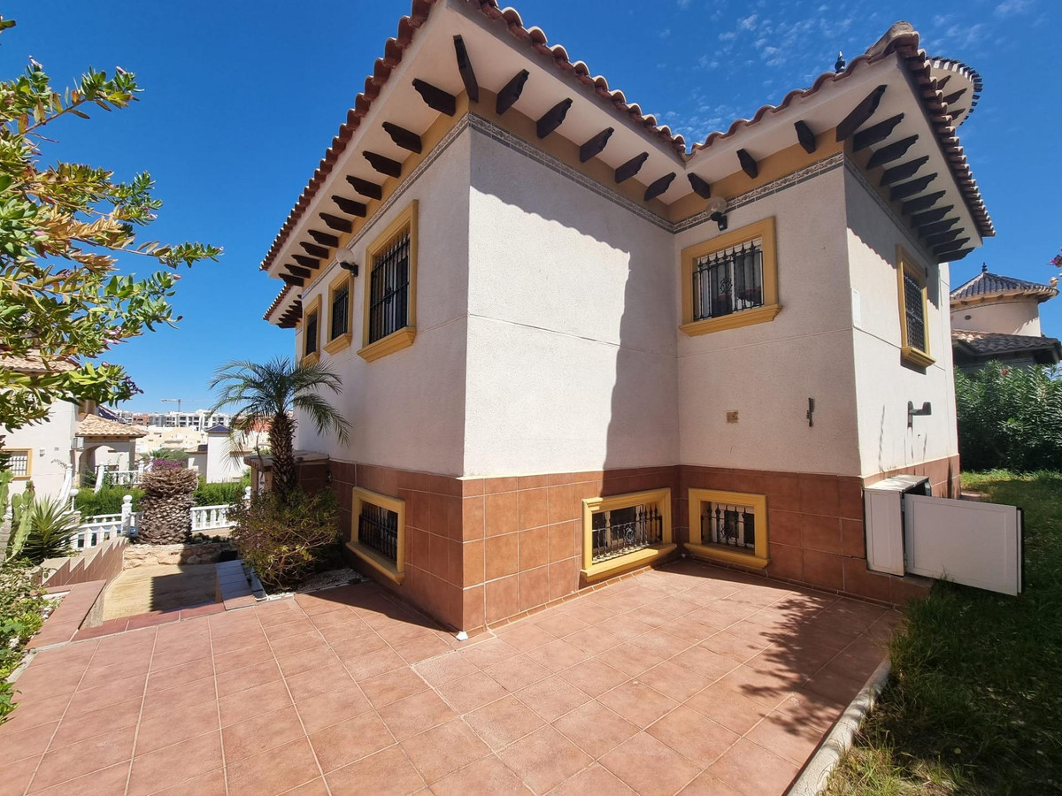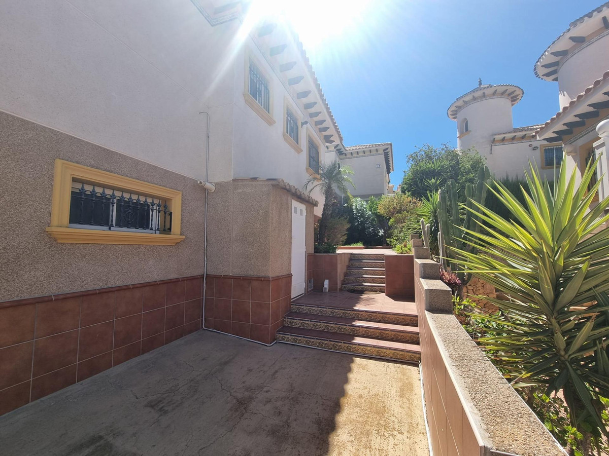 In Orihuela Costa Villamartin area, 189 m. of surface, 350 m. plot area, 7000 m. from the beach, 3 double bedrooms, 3 bathrooms, property to move into, northwest facing, tiled floor, aluminum exterior carpentry. Extras: water, air conditioning, fitted wardrobes, elevator, balcony, barbecue, garden, bright, furniture , community pool, terrace, video intercom, trees, parks, supermarkets, unobstructed views, children's areas, garage included, parking included Community fees: 180 Eur.