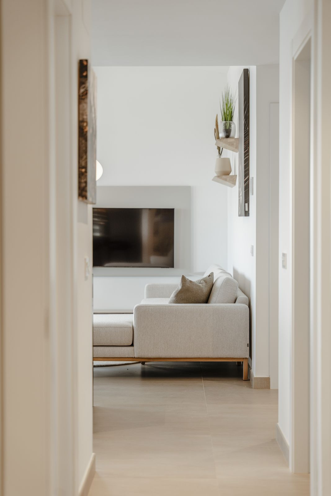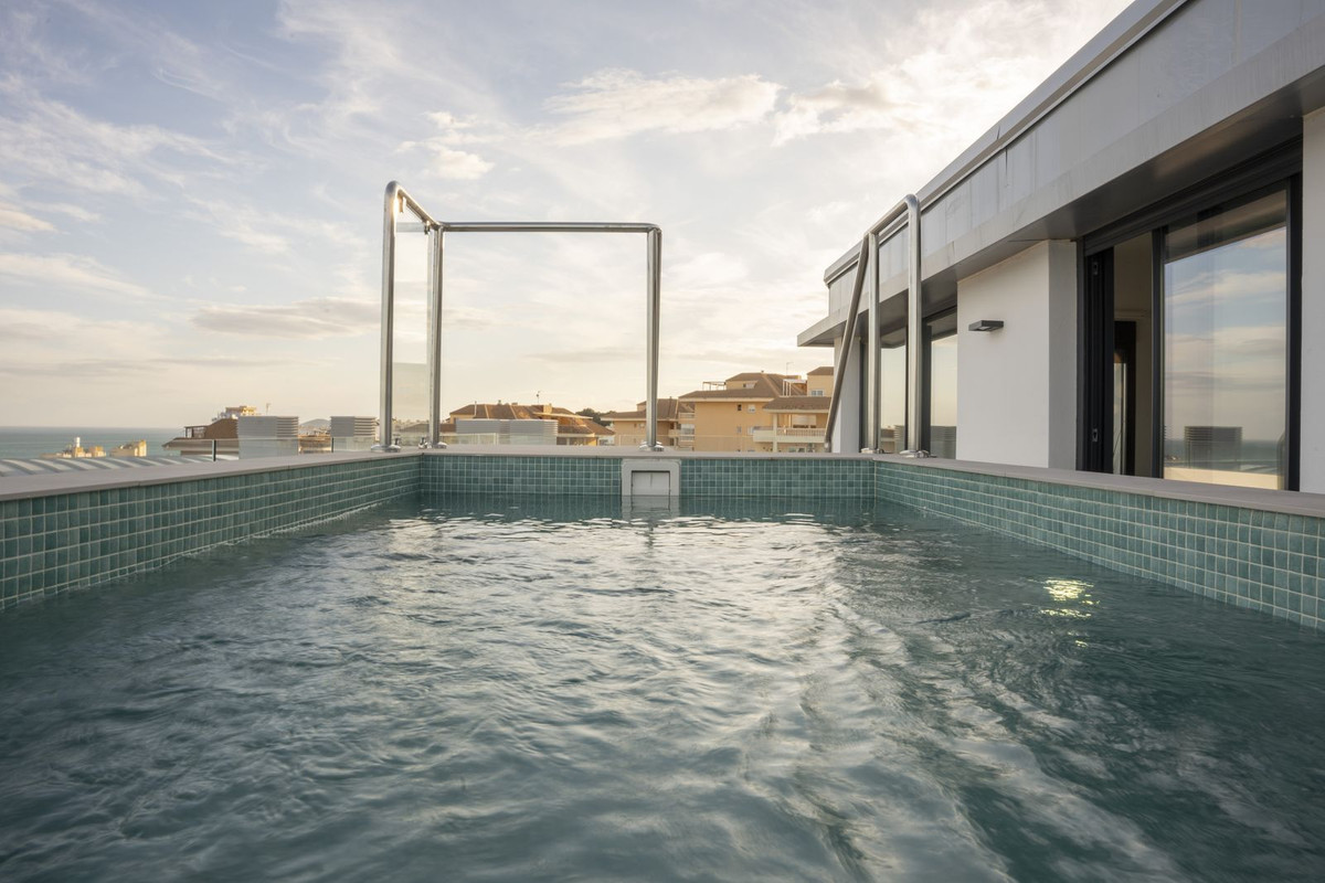 The residence belongs to an exclusive gated community with landscaped communal areas, a shared pool, and fitness facilities. Its location is ideal — just a 5-minute walk to the beach, with the Carvajal train station on the doorstep offering direct connections to Málaga Airport and Fuengirola town centre.