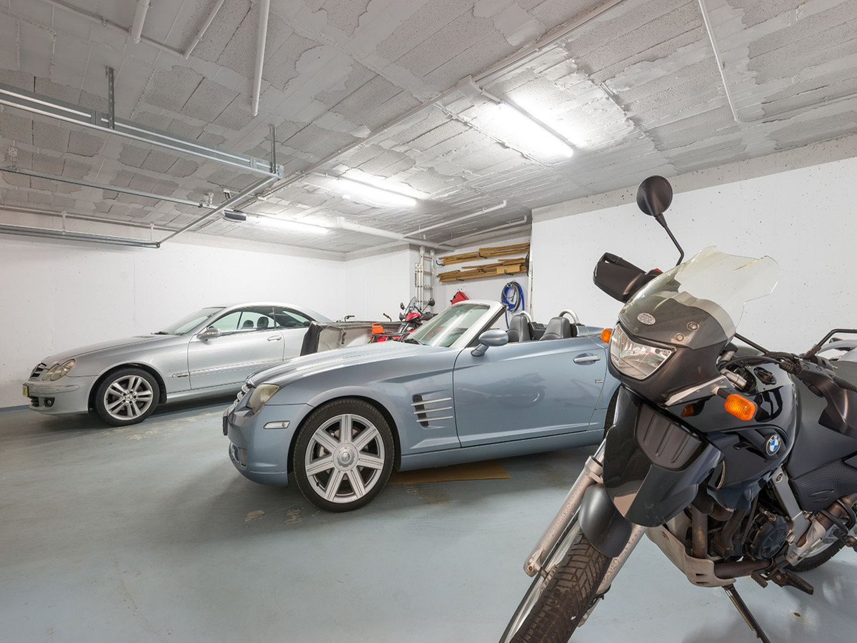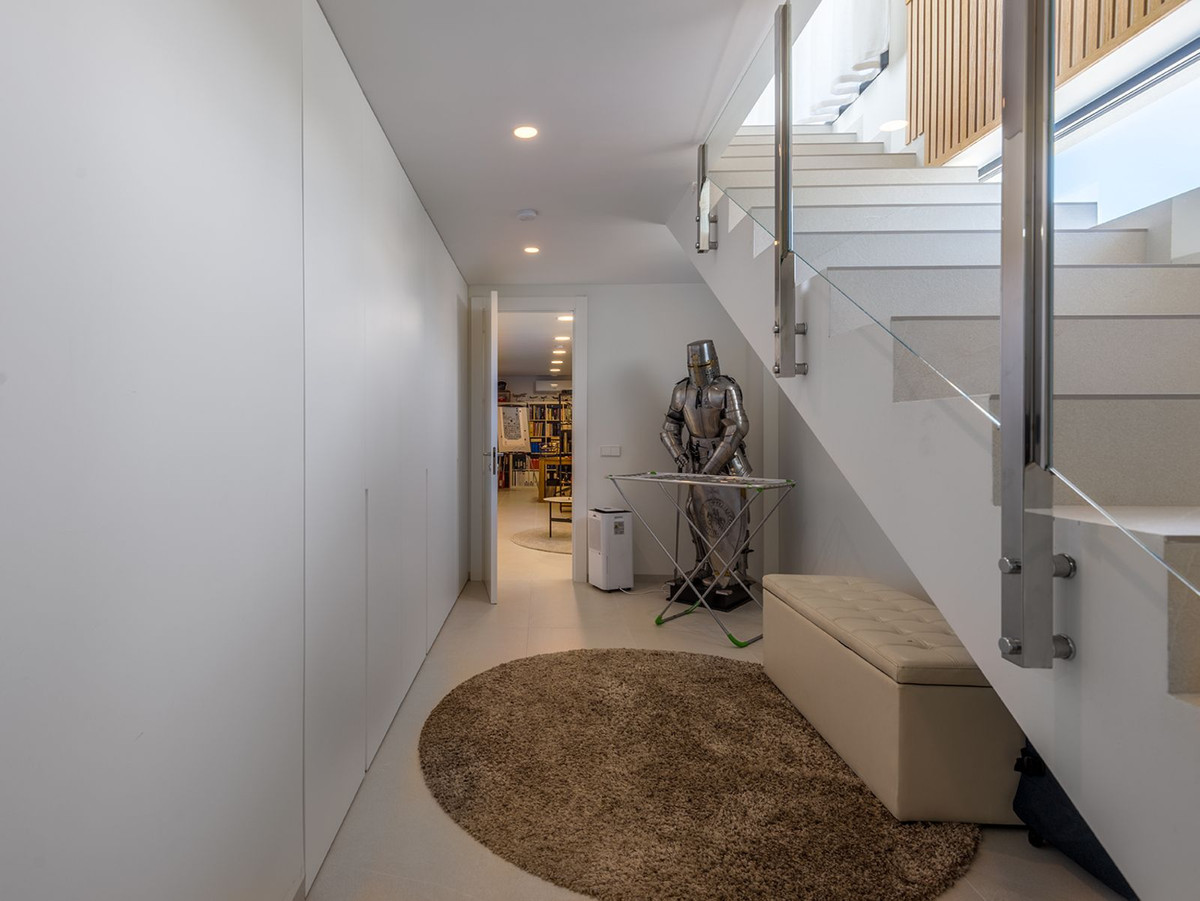 On the ground floor you are welcomed with a huge office space, a utility room, a bedroom with a walk-in wardrobe and access to a large garage.