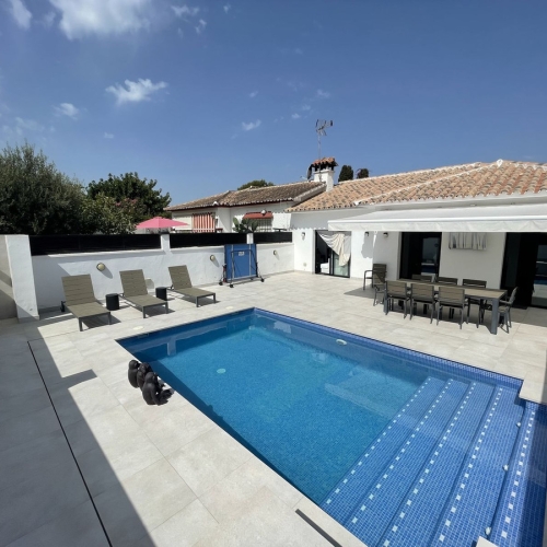 This stunning, partly refurbished 4-bedroom, 3.5-bathroom detached villa offers the perfect blend of comfort, style, and convenience, just a short walk from the beautiful beaches of the Costa del Sol. Situated in the desirable town of San Pedro de Alcántara, the property enjoys a prime location within walking distance to the beach, shops, schools, and local amenities, making it an ideal choice for both family living and holiday getaways.