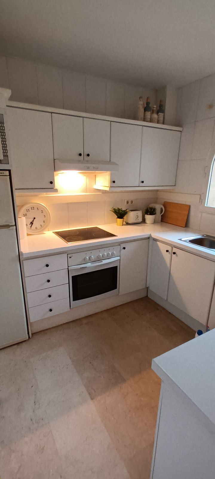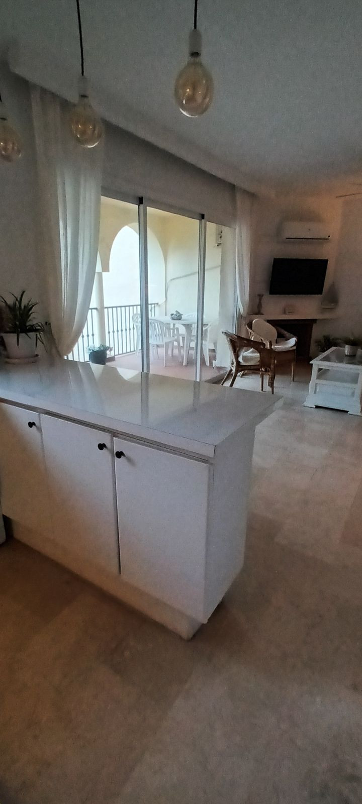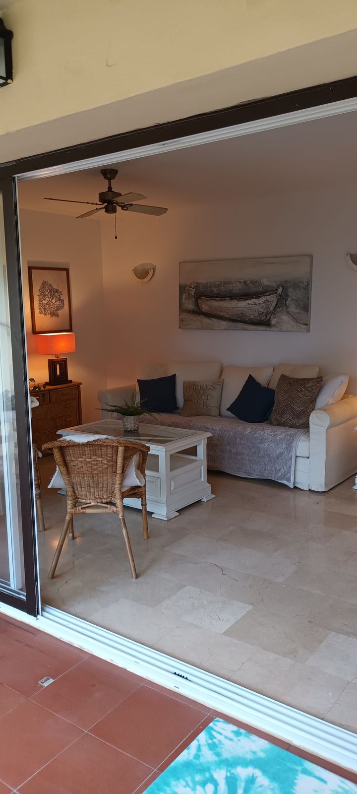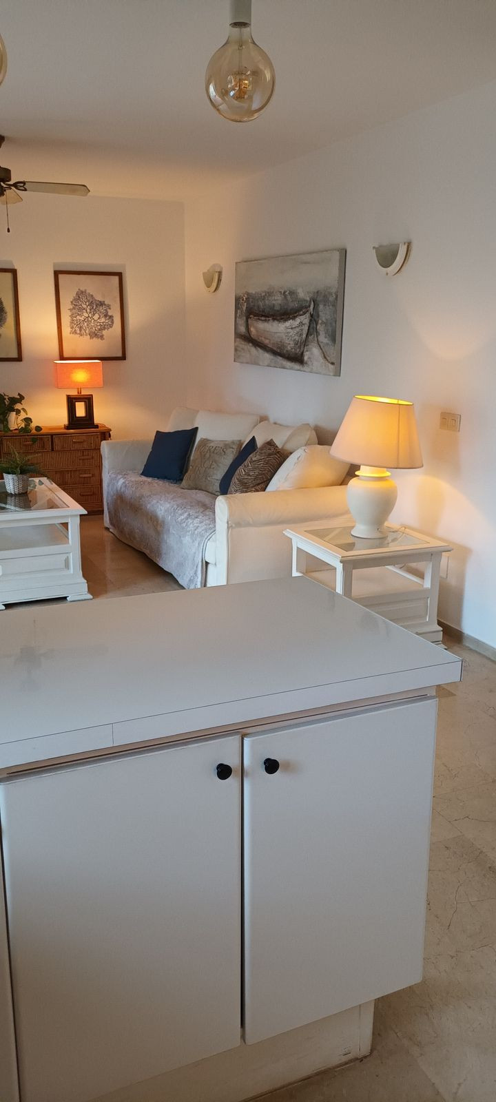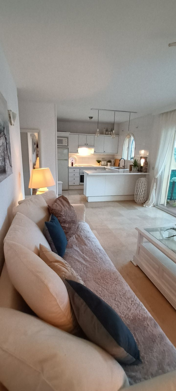Recently renovated 2 bedroom, 2 bathroom apartment right by the beach. Perfect for holiday rentals or for living in a privileged area by the sea. Just a 2 minute walk to the beach/boardwalk through a private pedestrian tunnel from the communal gardens/pool. The apartment features a spacious living/kitchen area that opens onto the terrace with sea views. 2 double bedrooms and 2 bathrooms. Very well-maintained communal areas with 2 pools (1 for children) and private outdoor parking. If you feel like dining or having breakfast on the beach, you can head down to "El Oceano Beach Hotel and Restaurant" right next door, or to the nearest beach bar, which is a 5-minute walk away."