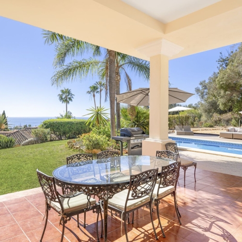 This beautiful villa was built in 1994 and got a fancy makeover in 2018 by its current owners. It's in a really posh part of Marbella, just 10 minutes from the Orange Square in Old Town.