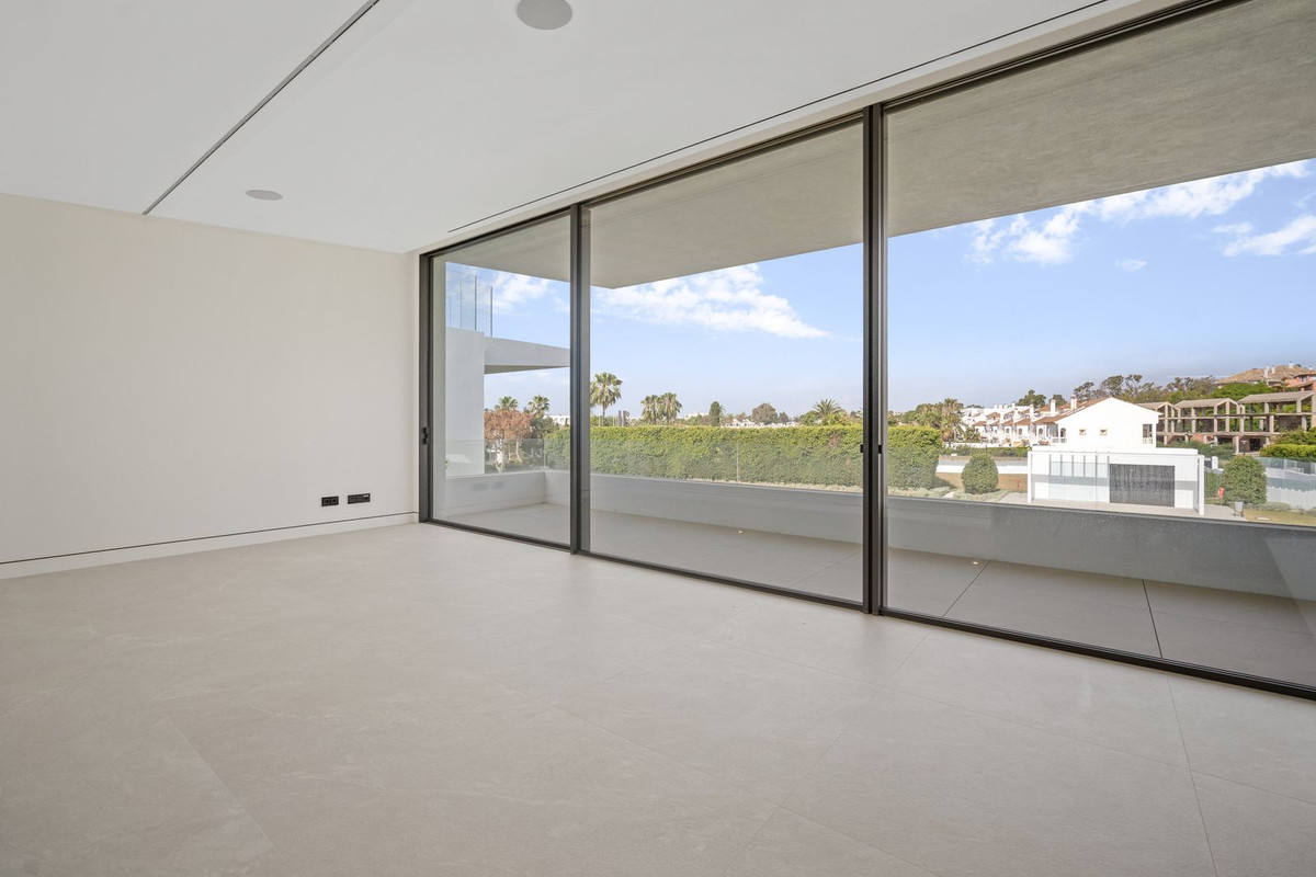 Välkommen till denna moderna parhusvilla i en superlativ utveckling av lyxhus på Marbellas Golden Mile där du kan uppleva ett modernt boende när det är som bäst. Inspirerad av art déco-periodens elegans, uppvisar samhället sofistikerad samtida estetik med chica, rena linjer. Från det ögonblick du anländer kommer du att bli fängslad av de noggranna trädgårdarna och den fridfulla vattenfunktionen som sätter tonen för upplevelsen som väntar.