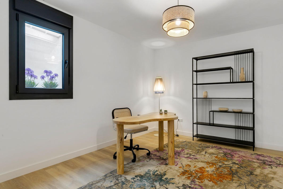 Main floor contains of 1 bedroom, 1 bathroom, 2 terraces, open kitchen with dining and livingroom. One of the terraces has stairs to the pool area.