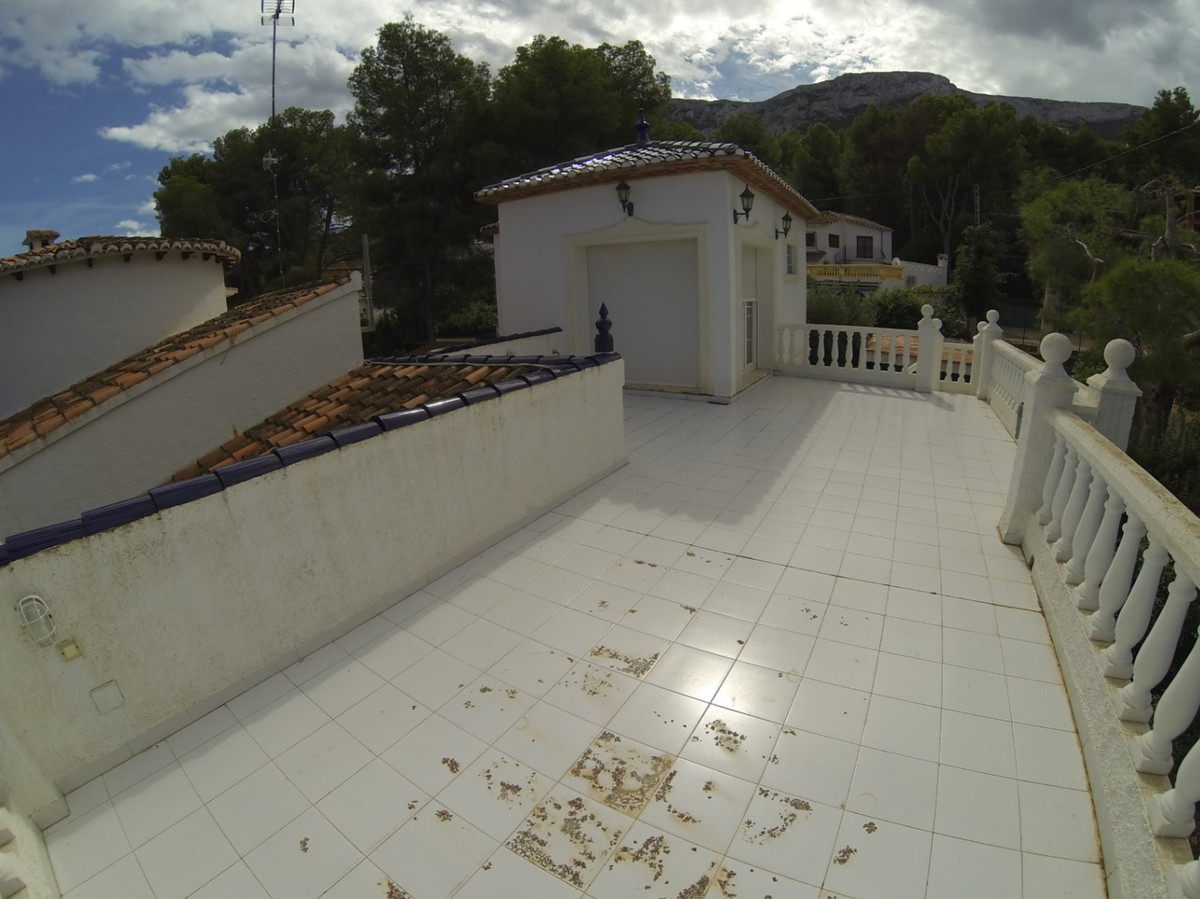 Impressive Villa in one of the quietest and most pleasant areas of Denia, with great views of the Montgó natural park, and partial views of the sea. A house fully equipped to move into. The property consists of a fully furnished main house of 310m2 with gas central heating and air conditioning, with 4 bedrooms the master with toilet, living room with fireplace, kitchen, toilet shower and a bathroom of about 25m2 with hydromassage cabin, a tower with a bedroom and bathroom, and a studio with a shower toilet. There is a pool house with, a kitchen, shower toilet and storage room. It also consists of a covered area with a built-in barbecue, 2 benches and table, and a garage with pergola. It has a plot of 2700m2 with entrance from two streets, totally private and fenced with large well-kept gardens, a well, several terraces with green spaces and private pool. It is 1 km from Denia and 2 km from the sea.