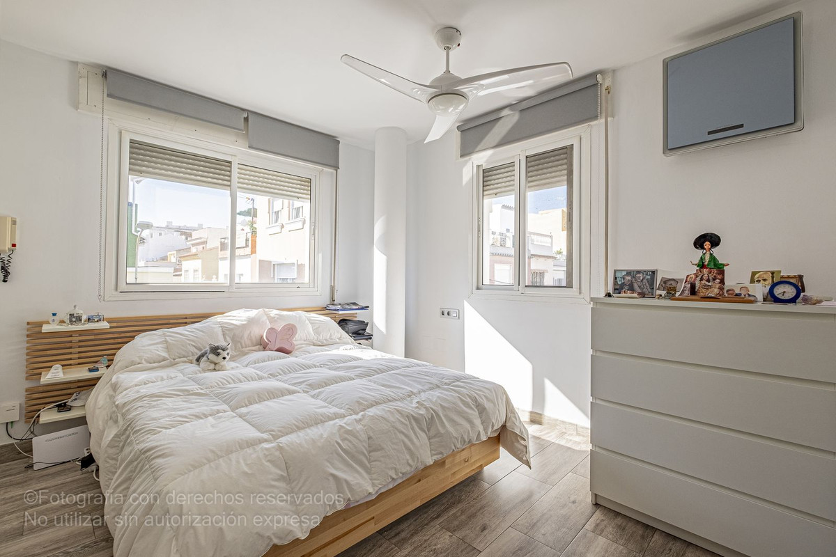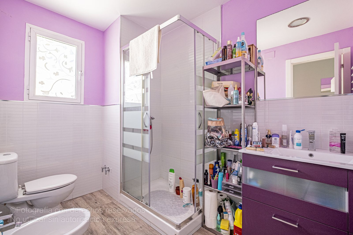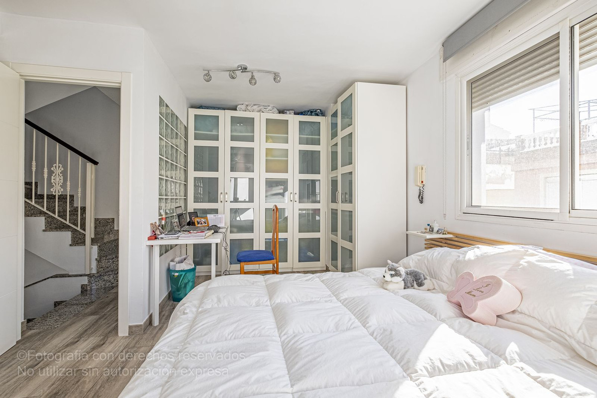 Bottenvåningen består av ett fullt utrustat modernt kök, ett rymligt vardagsrum / matsal och ett komplett badrum. På övervåningen finns det stora sovrummet med eget badrum och på tredje våningen finns ytterligare två sovrum med ett komplett badrum. Juvelen i denna fastighet är dess spektakulära solariumterrass, som erbjuder hisnande panoramautsikt över staden Malaga, perfekt för att njuta av stunder av avkoppling och utomhusunderhållning.