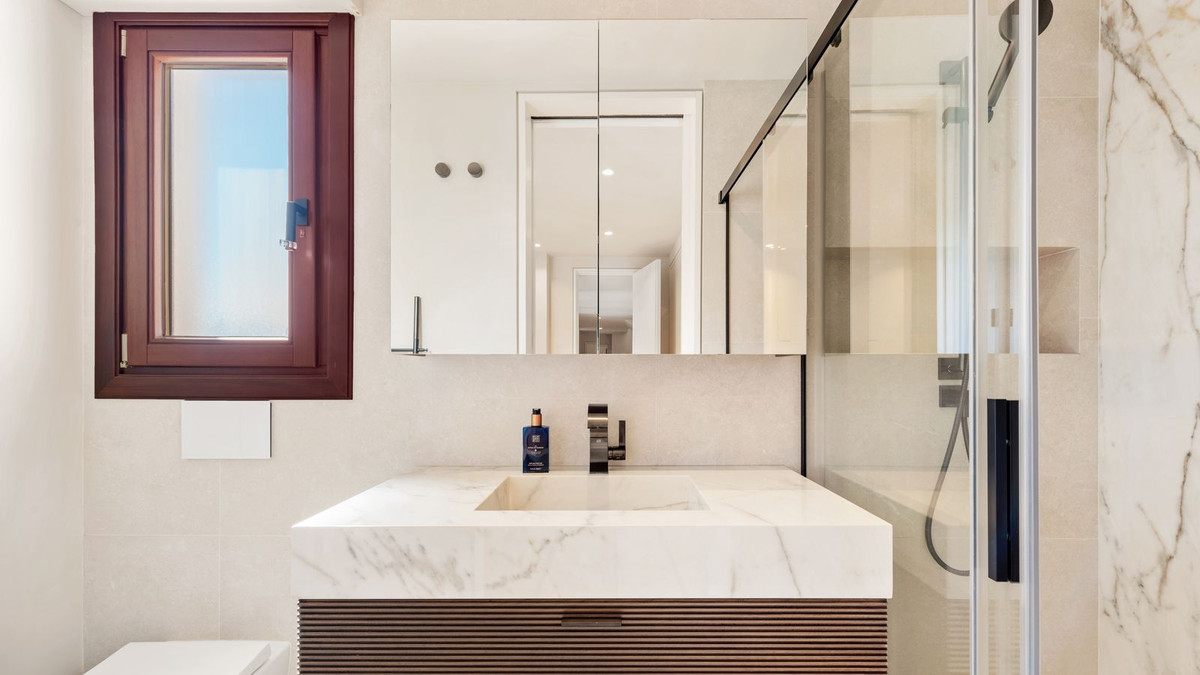A spacious, fully refurbished 4-bedroom penthouse with a large entrance hall leading to the open plan living area. The modern designer fully fitted kitchen by SIEMATIC with the latest Miele appliances and breakfast island offers an inviting space for informal gatherings with family and friends. The combined open kitchen, dining room and living room are perfectly distributed all leading onto the grand terrace where different ambiences have been created, either enjoy the beautiful Mediterranean sunshine with an amazing back drop of the ‘La Concha' mountain or relish in a more refreshing area under the automized pergola.