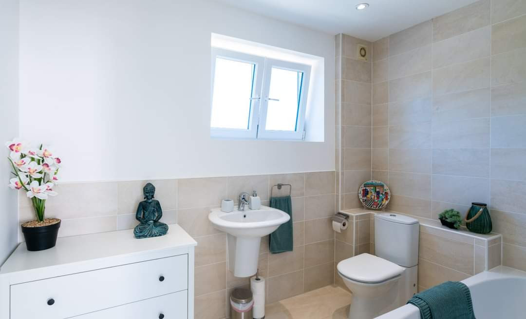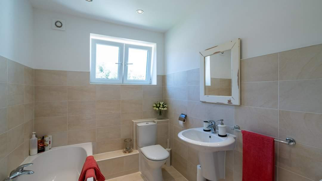 All living areas inc. bedrooms are fitted with oak effect laminate flooring, all other areas to house are tiled.\n