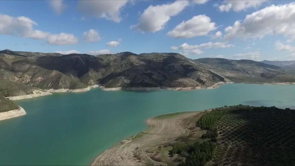 The track meanders beautifully around the edge of the Lake Iznajar\n