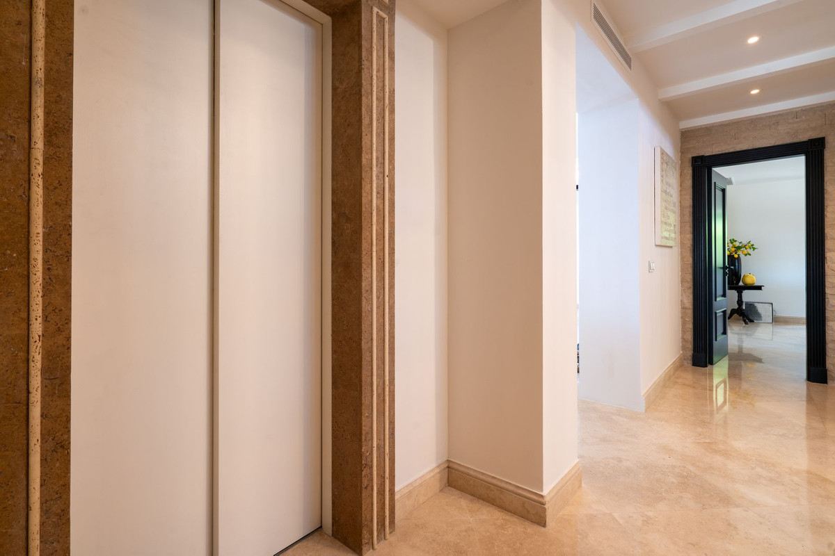 Enter the villa through an impressive wooden door and walk through the front garden with fountain to the main entrance. The spacious hall with chandelier and high ceiling immediately offers a breathtaking view of the sea. The bright living room, with partly open kitchen with luxury Siemens appliances and cooking island, has a full-length terrace for optimal light and sea views.