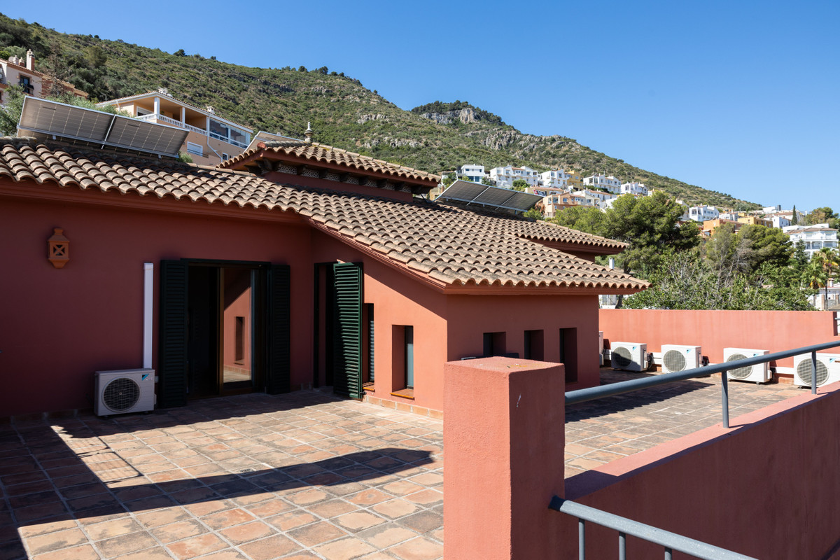 The spacious terrace is one of the highlights of the property, offering stunning mountain views and a perfect space to relax outdoors. In addition, the house has a swimming pool, ideal for enjoying the sunny days in a quiet and private environment.