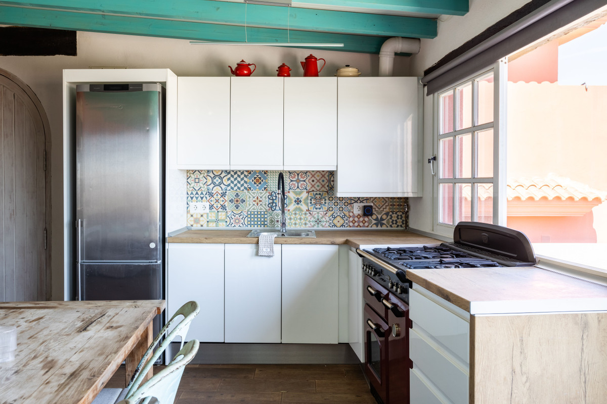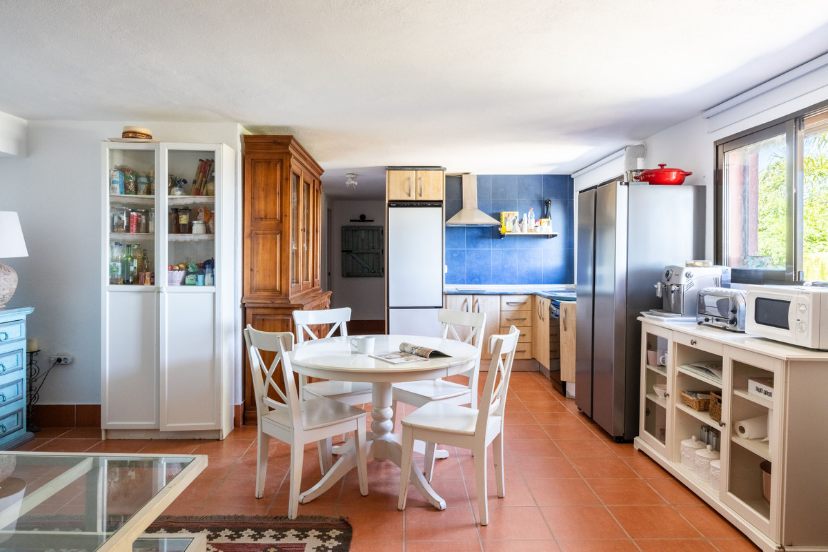 The spacious living room is the heart of the house, with large windows that let in natural light and offer views of the beautiful terrace. The classic style kitchen is fully equipped and designed to be functional and cosy, perfect for family gatherings and dinners with friends.