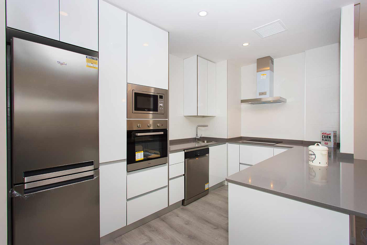 These modern flats in Los Dolses (La Zenia) have 3 bedrooms, 2 bathrooms, an open plan kitchen and a very spacious terrace.