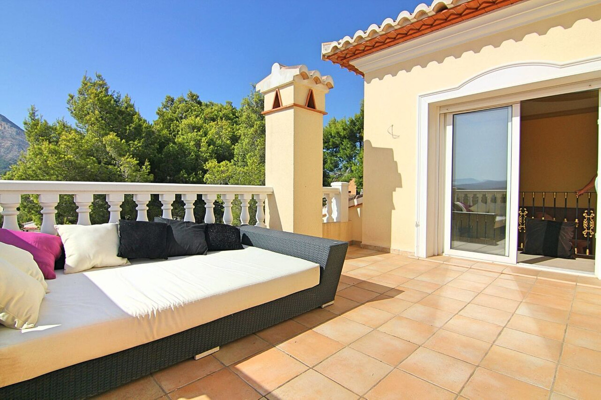 Traditional style villa of excellent qualities. Located on a large plot of 1800 m2 with beautiful views of the valley and the Montgó from all its terraces. Magnificent location surrounded by nature and very private near the old town in the Senioles area.One owner from new.The house has three levels, on the ground floor is the garage and the 10x5 infinity pool and solarium area. There is space for another 200m under build to be developed, for extra accomodation.The main house is a parking lot with a pergola; the entrance is very bright due to a skylight that gives altitude and light to the house given its Southwest orientation with sun all day.There is the living room with fireplace, dining room with access to the naya, which is very spacious with open views of the Montgo and clear that goes around the house; a spacious kitchen with access to the rear terrace which is where the laundry and barbecue area is. In the other part of the villa are the three bedrooms and 3 bathrooms, one of them with dressing room and bathroom en suite.On the upper floor, through some beautiful stairs, we reach the master bedroom with built-in wardrobes, a sitting area, and a large bathroom with a hydro-massage bathtub and shower; It has 2 private terraces with beautiful views.The house has underfloor central heating and hot / cold air conditioning in all rooms. Large parking area for several cars.It has a large gas facility as well. Plus 3 natural water wells. So free water.