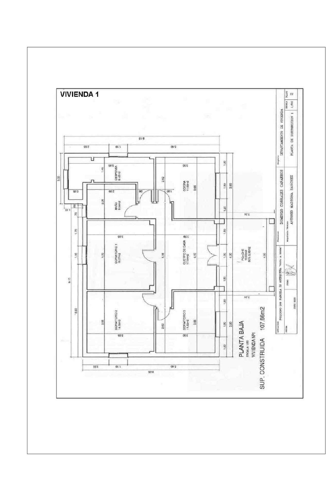 -Villa 1: 107.66 m² (veranda, hall, kitchen, pantry, bathroom, and three bedrooms)