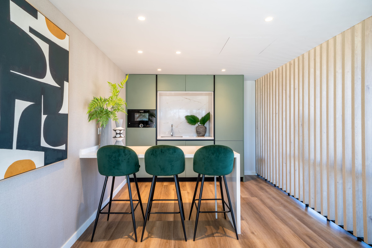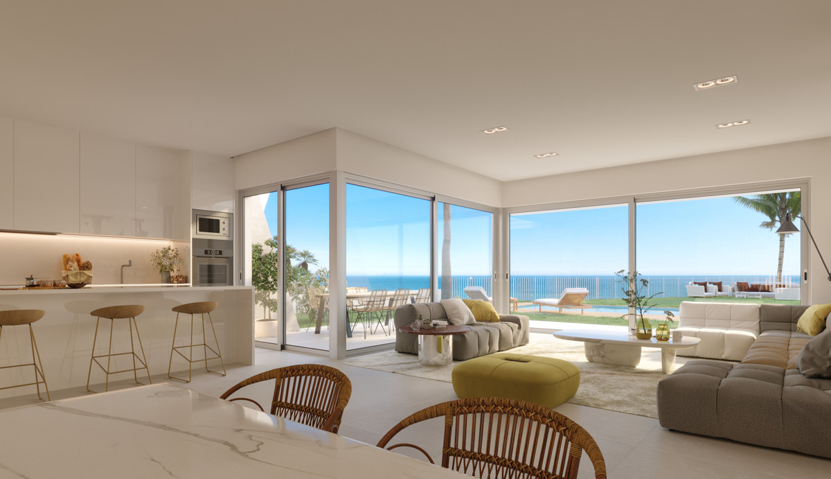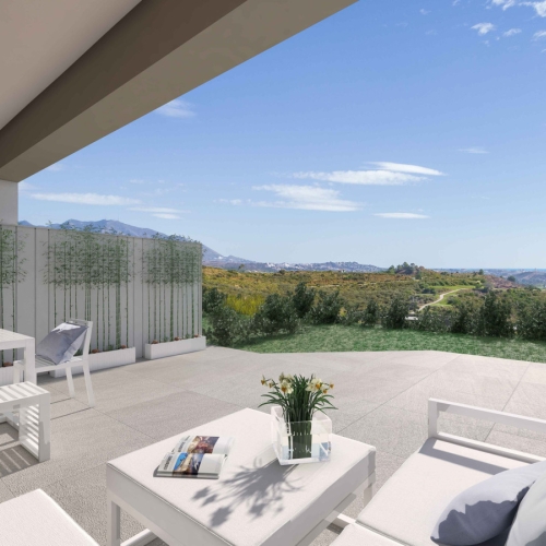 These luxury properties offer well-distributed interior spaces where living area, dining area and fully fitted kitchen with breakfast bar blend into a living space that maximizes views from over-sized triple aspect doors and windows. Connection between outside and inside space is seamless with generous covered and uncovered terraces - the perfect place to relax and enjoy the views overlooking the golf course or the south-western coastline onto the Mediterranean Sea.