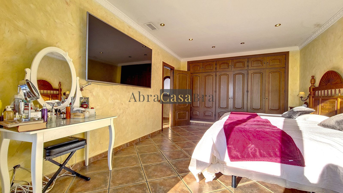 Det vackra sovrummet med inbyggda garderober är mycket rymligt och har vacker utsikt över bergen med havet i fjärran. Den har två dubbelsängar.