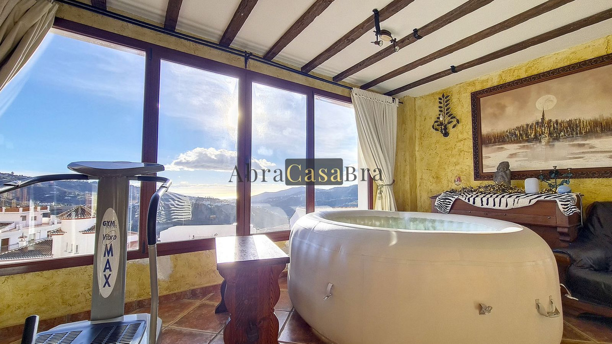 De 2 takterrasserna ger en fantastisk utsikt över bergen, havet och byn. Vissa dagar kan man till och med se Atlasbergen i Marocko. Fastigheten har fiberoptiskt internet och dubbelglas. Vattnet värms upp med hjälp av solpaneler och det finns luftkonditionering i hela huset.