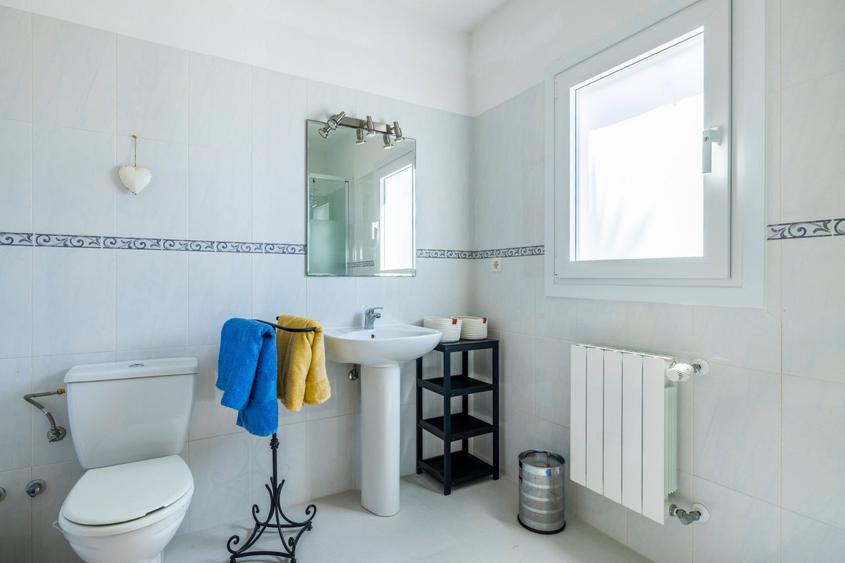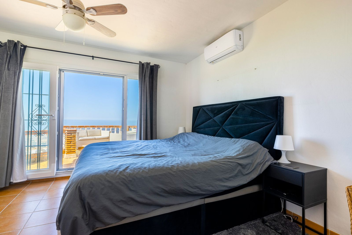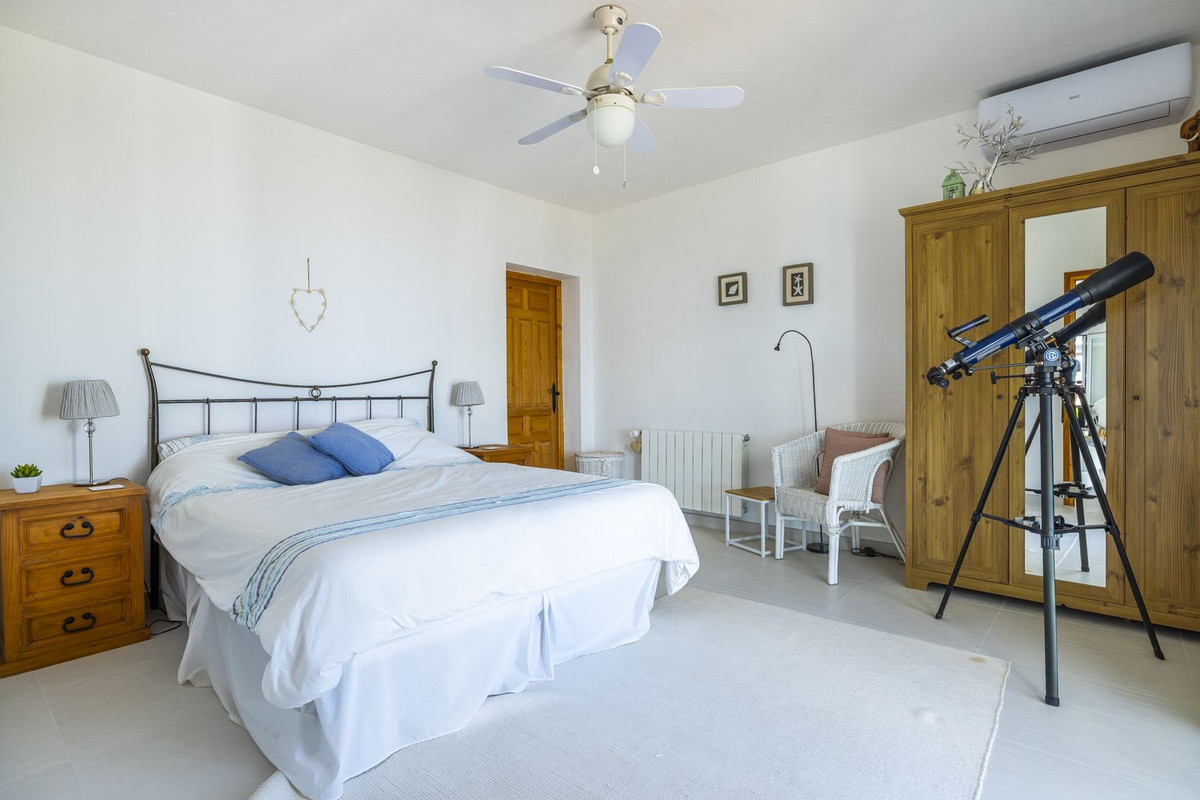 - Master bedroom ligger på övervåningen och har luftkonditionering, eget badrum och ett omklädningsrum. Härifrån har du direkt tillgång till takterrassen – den perfekta platsen att koppla av och njuta av hisnande utsikt och oförglömliga solnedgångar.
