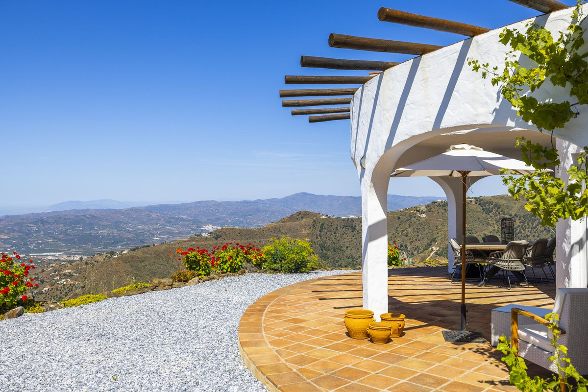 Denna nyrenoverade moderna villa har ett fantastiskt läge på berget Bentomiz i Arenas – bara 5 minuter från den pittoreska vita byn, 20 minuter från Algarrobo Costa och 50 minuter från Málagas flygplats.