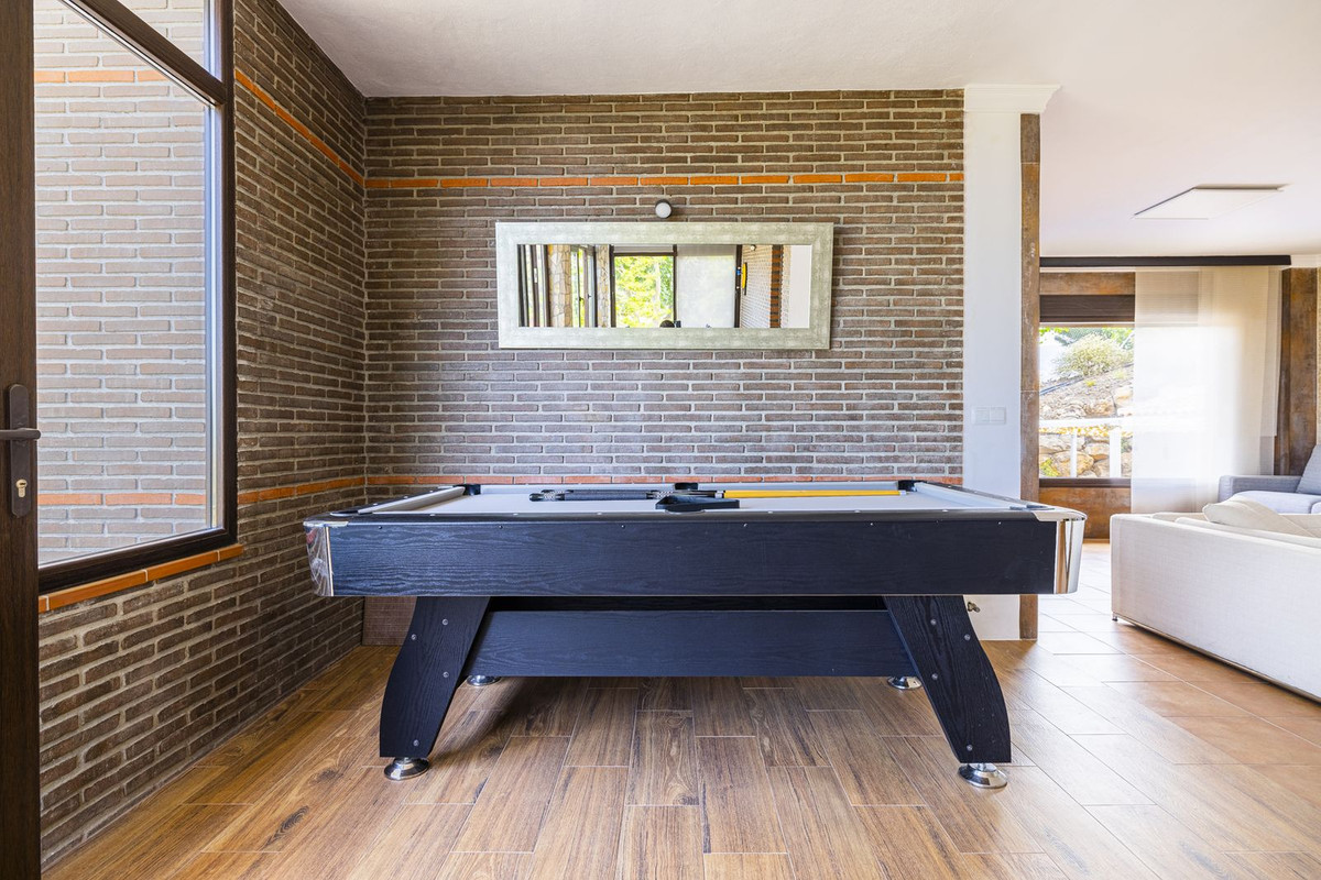 Villan har 4 rymliga och ljusa sovrum, perfekt för hela familjen, och 3 moderna och funktionella badrum med högkvalitativa ytbehandlingar. Den privata poolen är perfekt för att koppla av och njuta av Medelhavsklimatet, medan den öppna spisen ger en mysig touch på svala kvällar. Dessutom garanterar förinstallationen av luftkonditionering komfort året runt.