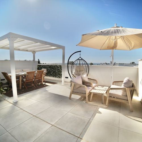Townhouse for sale is located in the area of Avenida de Andalucia in Estepona. With a total surface area of 284 m² and a living area of 250 m², this property has 2 single bedrooms, 2 double bedrooms, 2 bathrooms, 1 toilet and is adapted for disabled people. Among its amenities, we can highlight the air conditioning (hot and cold), fireplace, kitchen, dining room, laundry room, terrace and patio. The property, which is between 20 and 30 years old, is in a good state of conservation and offers a south orientation, which provides natural light during most of the day. The area of Avenida de Andalucía is in the process of urban development, characterised by the quality of the new buildings and its privileged location, which makes it a place with good prospects for the future.