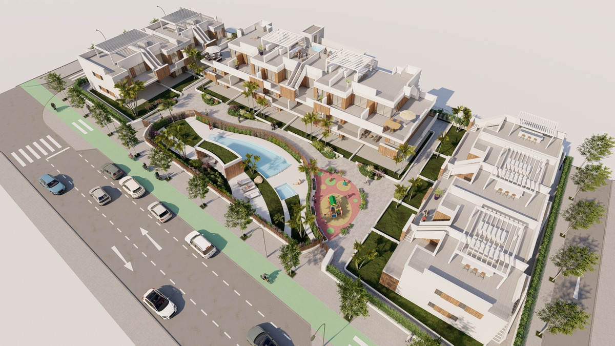 The development is located in Pilar de la Horadada (Alicante), close to green areas and surrounded by services, parks, sports facilities and near the beach and several Golf Courses.
