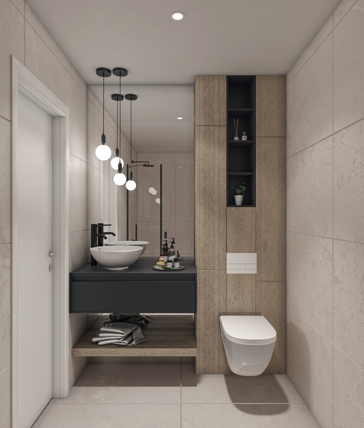 Fastigheterna är fördelade på 4 våningar, med 2 eller 3 sovrum och 2 badrum. Bottenvåningarna har 3 sovrum (det tredje sovrummet är ett öppet studio utan inbyggd garderob) och de övre våningarna har ett stort solarium.