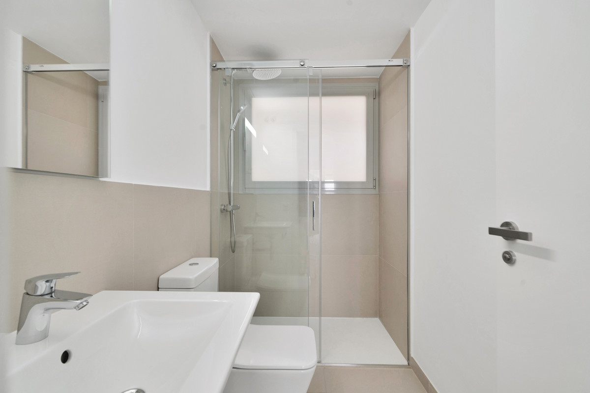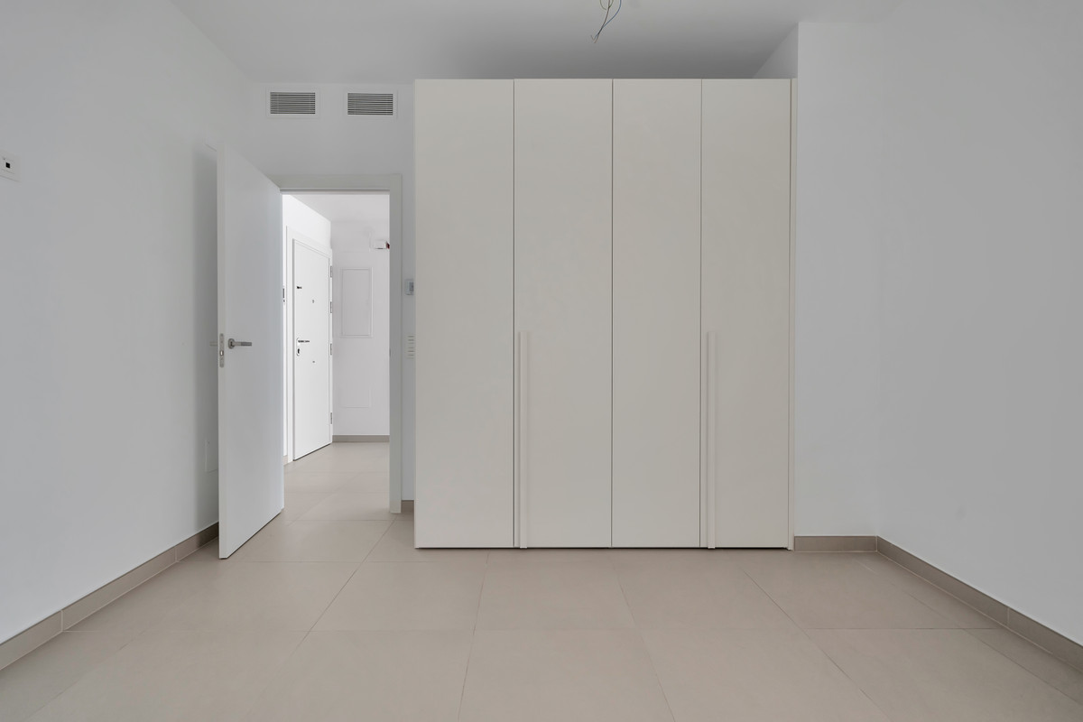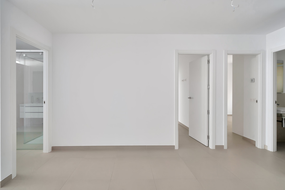 The apartment includes three spacious bedrooms with fitted wardrobes. The master bedroom, which has an en-suite bathroom, and one other bedroom have access to the terrace.