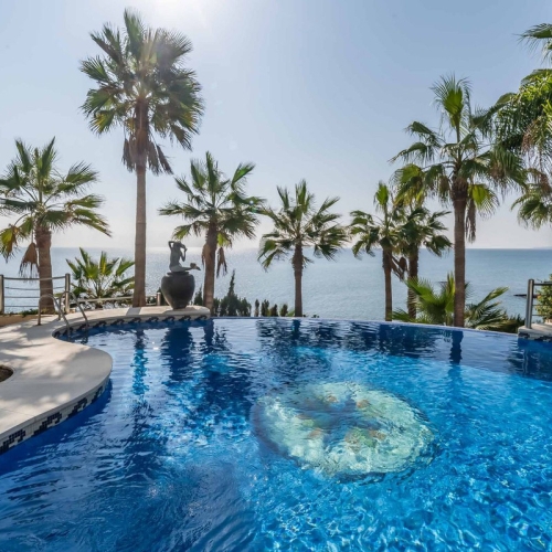 This exquisite residence boasts excellent amenities, including tropical gardens, sun terraces, two outdoor pools, one indoor pool, a fitness center, and a spa with a sauna room. The outdoor infinity pool offers exceptional views overlooking the Mediterranean. The high-quality gym with sea views is equipped with top-of-the-line equipment. The luxurious spa and wellness center are ideal for relaxation and enjoyment.