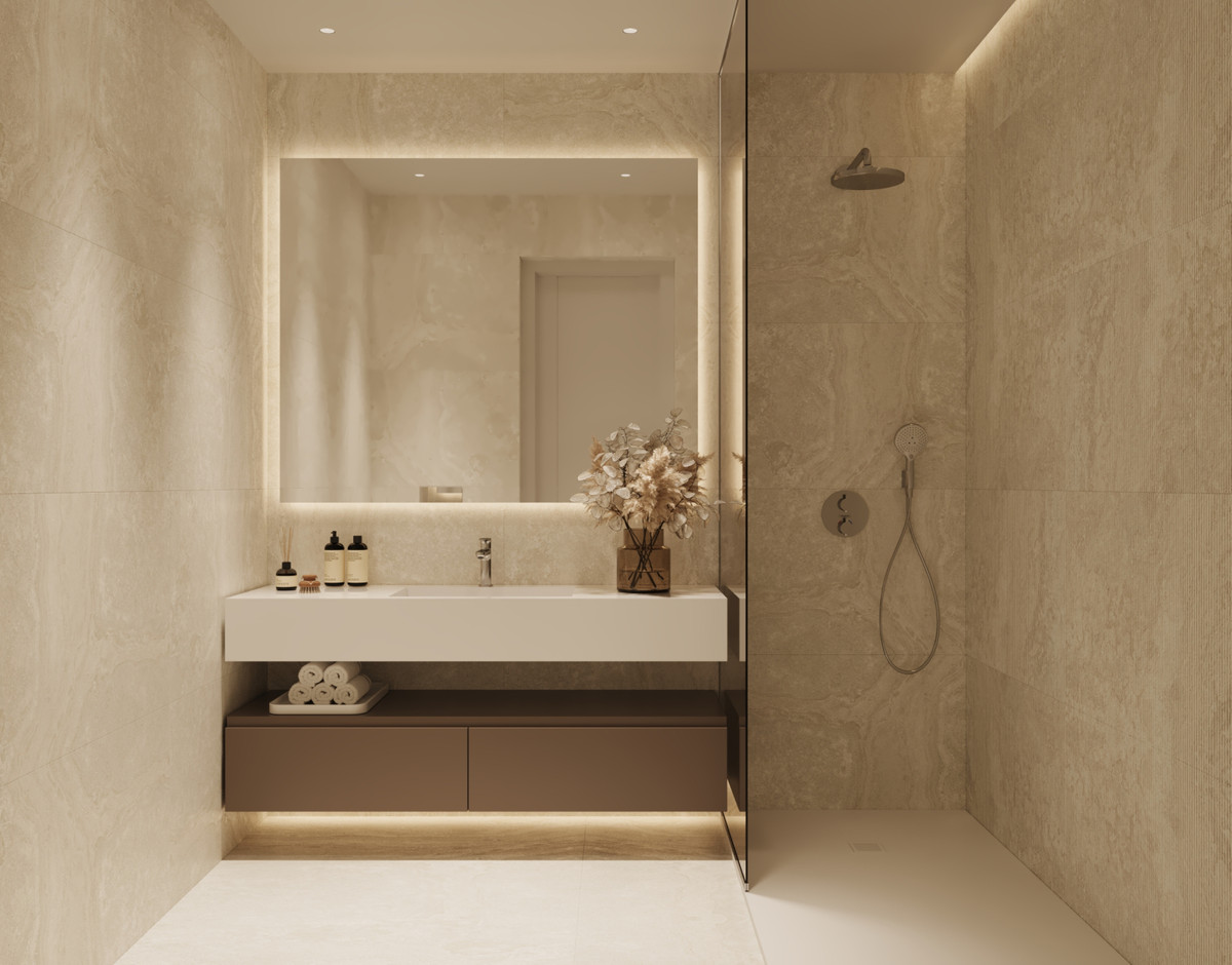 De gemensamma områdena inkluderar en pool, toalett, avkopplingszon, trädgård, underjordisk parkering (med en parkeringsplats per enhet, 2 parkeringsplatser för penthouse-lägenheterna) och ett förråd (för varje enhet).