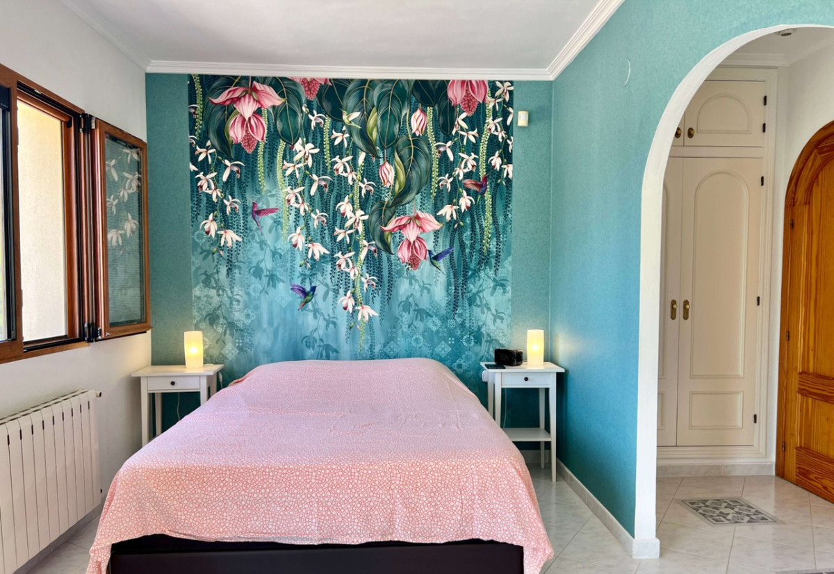 On the edge of a protected nature reserve, in an oasis of tranquility and with delightful views, you will find this villa in traditional Spanish style. The property consists of 2 levels and can be perfectly used as 2 separate living units. You can access the villa through the automatic sliding gate or the separate pedestrian entrance. The entrance features a spacious hallway, where the beautiful arches of the stairwell immediately catch the eye. From the entrance, there is direct access to the living area and the kitchen on one side, and the sleeping area on the other. The master bedroom, with its dressing area, has an en-suite bathroom. This luxurious bathroom is equipped with a large jacuzzi and offers a wonderful view of nature. Additionally, there is a second bedroom and bathroom. From the spacious and bright living room, divided into a dining room and lounge with a fireplace, you already have a view of the famous Ifach of Calpe! On this side of the villa, there is also the covered terrace and the swimming pool, surrounded by tropical plants and equipped with an outdoor shower and relaxation area. The lower level, accessible via an outdoor or indoor staircase, enjoys the expansive terrace, private garden, and laundry and storage spaces, and includes the separate apartment. This features a sitting area, open kitchen, two bedrooms, and two bathrooms. There is a private entrance, and the apartment can also be closed off from the upper floor. Even from here, you can enjoy privacy and views! A lot of attention has been paid to quality and energy saving. For instance, the outdoor terrace has been re-tiled. Thanks to the solar boiler, the property is extremely economical in consumption. In other words: this delightful villa is ready to move into and enjoy peace and sunshine.