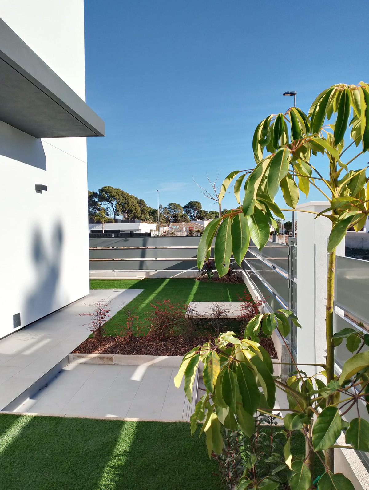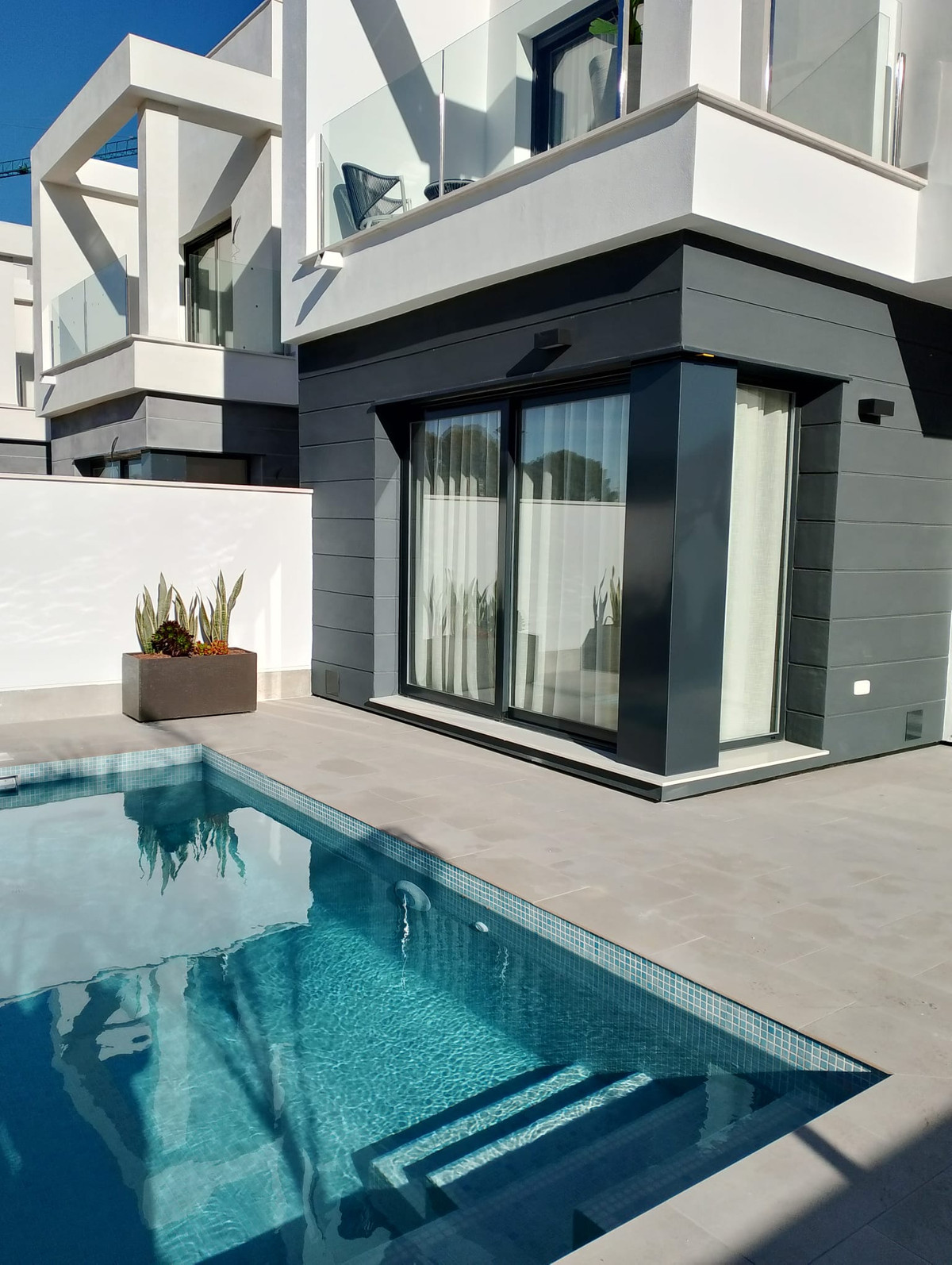 Vackra hus med privat pool och solarium i ett grönt område nära stranden
