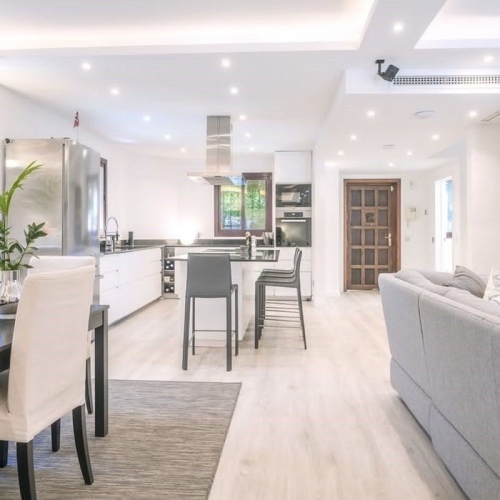 Experience ultimate comfort with hot and cold air conditioning, underfloor heating throughout, a built-in sound system, and the convenience and security of fingerprint access. For added convenience, the property includes private underground parking spaces with ample room for four large cars.