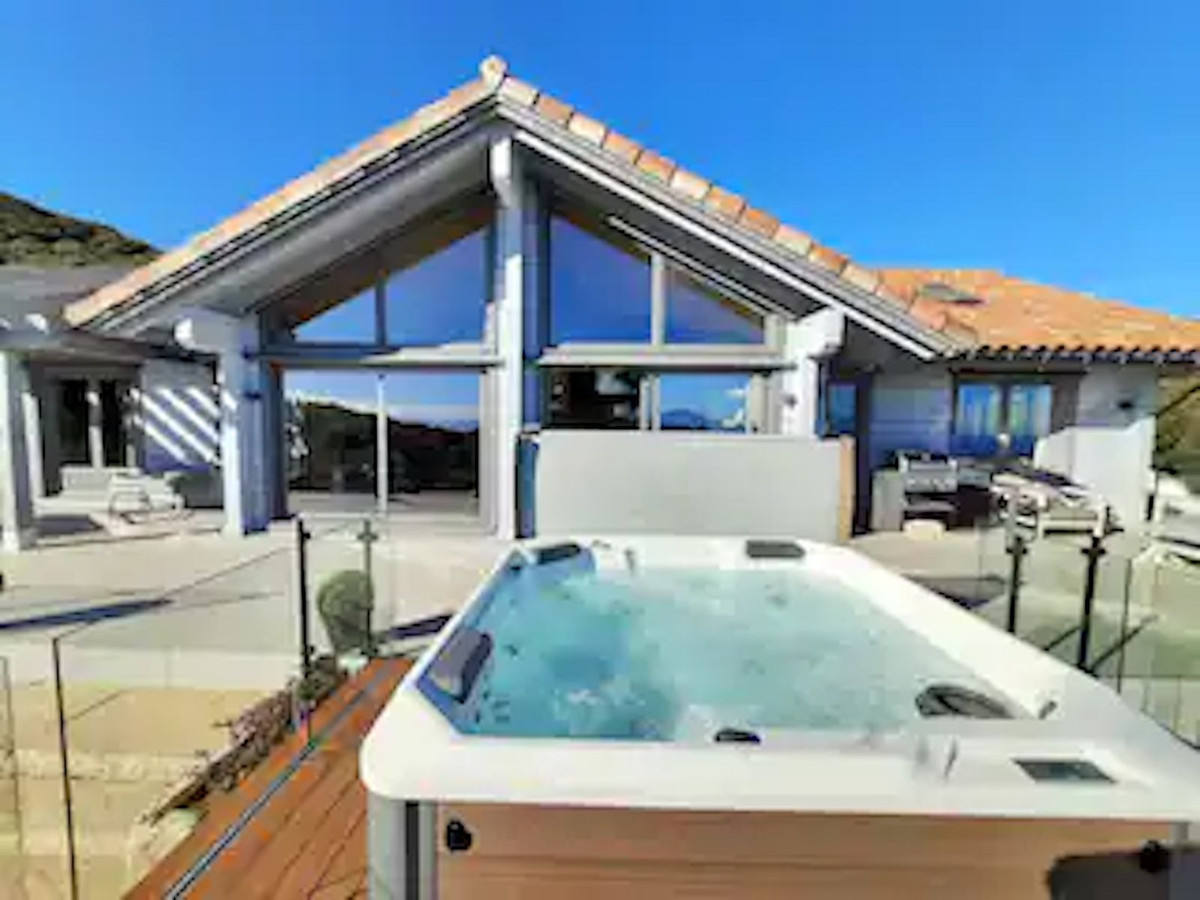 This amazing property has 5 bedrooms and 5 bathrooms and is surrounded by a beautiful garden. From the wall of windows in the living room you have a spectacular view of the Strait and Marocco. There is a large open plan living room with dining area and fully equipped kitchen with all major appliances. This stunning open space seems endless, with the spacious terrace overlooking the infinity pool. On the ground floor there is a separate apartment with one bedroom, one bathroom, kitchen and living room.