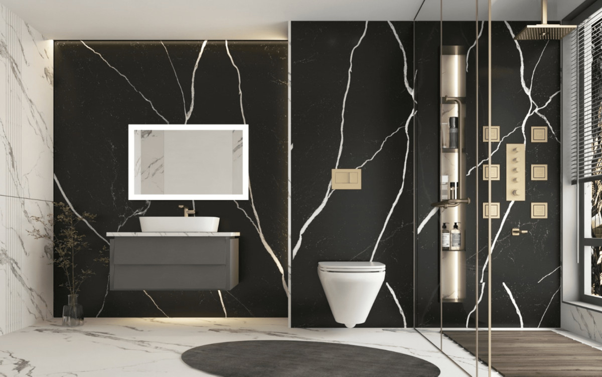 * Badrumsväggar med COVERLAM-plattor (GRESPANIA) 2700x1200