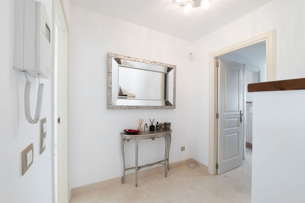 The rooftop features a solarium, a barbecue area, and a jacuzzi, perfect for enjoying outdoor living.