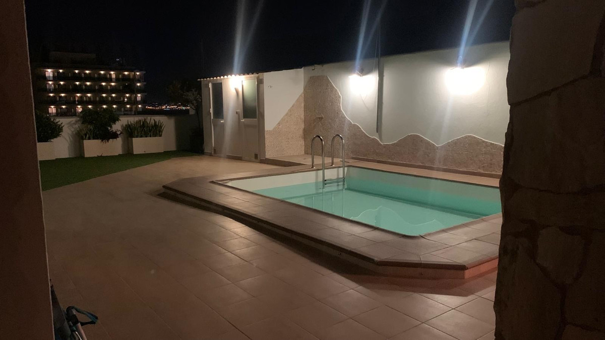 På det övre planet finns en stor takterrass med privat pool och ett poolhus utrustat med separat kök och vardagsrum. Här kan du njuta av sol, mat och bad samtidigt som du beundrar den fantastiska utsikten.